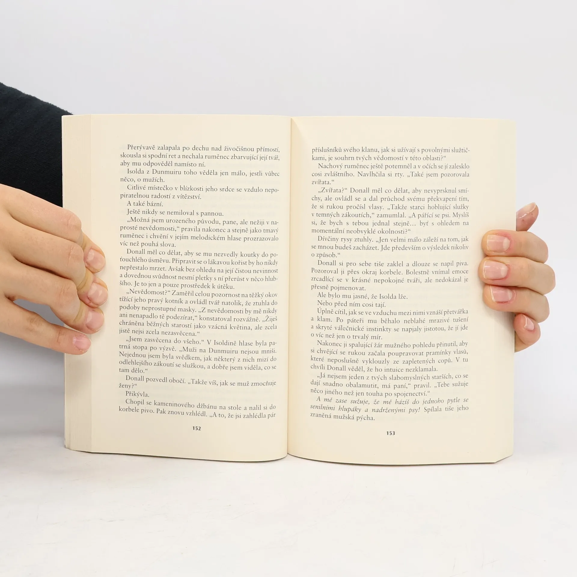 Nedaleko západních útesů Skotska, v blízkosti stranou ležícího, avšak překrásného ostrova Doon, se v mlhou zahalených vodách skrývá skála známá jako Ženská skála. Tento zrádný ostrůvek je patrný pouze při odlivu a posloužil nejednomu nespokojenému zemanovi jako prostředek, kterak se snadno zbavit nepohodlné manželky: neplodnou či vzpurnou ženu připoutal ke skále, aby se stoupající přílivem utonula. Před dávnými lety se tak zachoval také jeden MacLean a zažehl zavilý svár mezi dvěma kdysi spřátelenými klany. Nenávist se rozhořela naplno znovu nyní, kdy bylo na skále opět nalezeno tělo nevěsty z rodu MacInnesů. Donall MacLean, řečený smělý, přivezl tělo své mrtvé švagrové jejímu rodnému klanu, aby se s ní mohli náležitě rozloučit. Byl však při tom lstivě zajat a v odvetu má být potupně umučen. Krásná Isolda MacInnesová, sestra nebohé zemřelé a zároveň náčelnice celého klanu, má však s Donallem jiné plány - chce ho svést, protože doufá, že jedině dítě, kterému bude v žilách kolovat krev obou znesvářených rodů, bude zárukou trvalého míru. Může se láska zrodit z tak nemilosrdných pohnutek a má vůbec nějakou šanci proti lžím, intrikám a nenávisti?