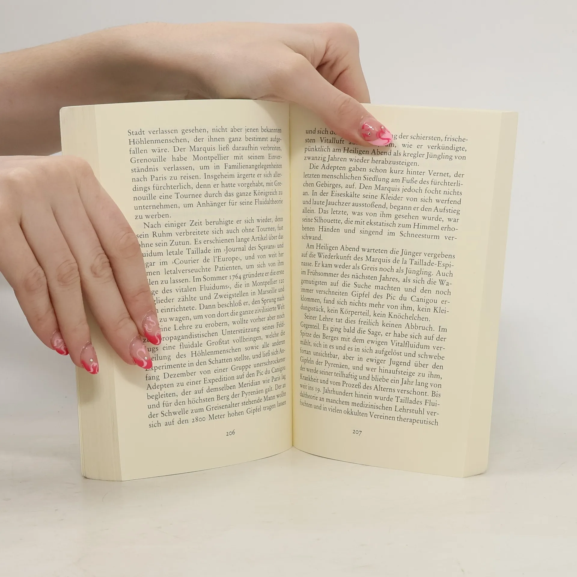 Von Jean-Baptiste Grenouille, dem finsteren Helden, sei nur verraten, daß er 1738 in Paris, in einer stinkigen Fischbude, geboren wird. Die Ammen, denen das Kerlchen an die Brust gelegt wird, halten es nur ein paar Tage mit ihm aus: Er sei zu gierig, außerdem vom Teufel besessen, wofür es untrügliche Indizien gebe: den fehlenden Duft, den unverwechselbaren Geruch, den Säuglinge auszuströmen pflegen.