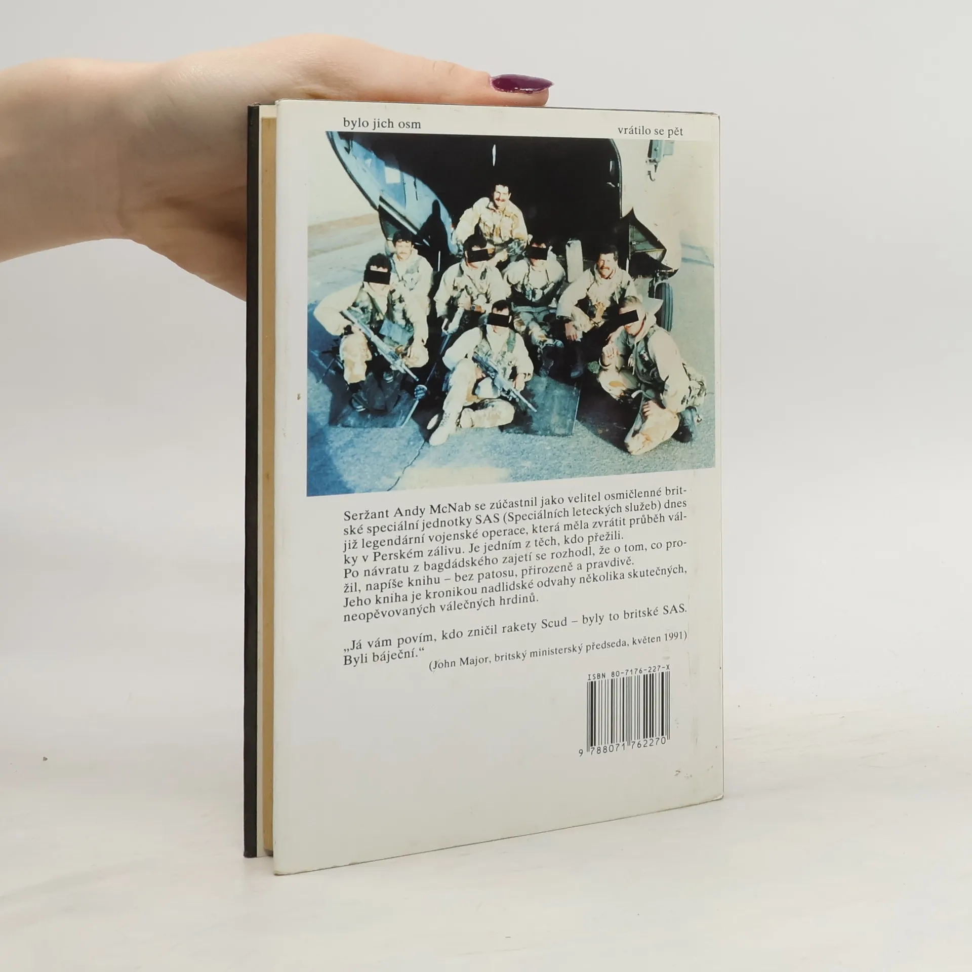V noci 22. ledna 1991 - tedy v době, kdy celý svět napjatě sledoval u televizorů nejnovější zprávy z války v Perském zálivu - nastoupilo na odlehlém letišti v Saúdské Arábii osm mužů britské jednotky SAS do helikoptéry, která je měla vysadit hluboko za nepřátelskými liniemi. Posláním přísně tajné operace, jejímž velením byl pověřen seržant Andy McNab, bylo narušit spojení mezi Bagdádem a severozápadním Irákem a zlikvidovat odpalovací rakety Scud dříve, než bude vyprovokován Izrael, aby rovněž vstoupil do války. Navzdory nezměrné statečnosti a houževnatosti McNabových lidí se operace nevyvíjela podle plánu. Čtyři muži padli do zajetí. Tři zahynuli. Pouze jeden unikl. Za nimi zůstalo na dvě stě padesát zabitých nebo zraněných Iráčanů. Pro ty Brity, ze kterých se stali zajatci, však měla nejhorší zkouška teprve přijít. Padli do rukou nepřítele a museli vytrpět nemilosrdné mučení, na jaké je dopředu nemohl připravit ani ten nejdrsnější výcvik. Konečnou stanicí byl Bagdád.