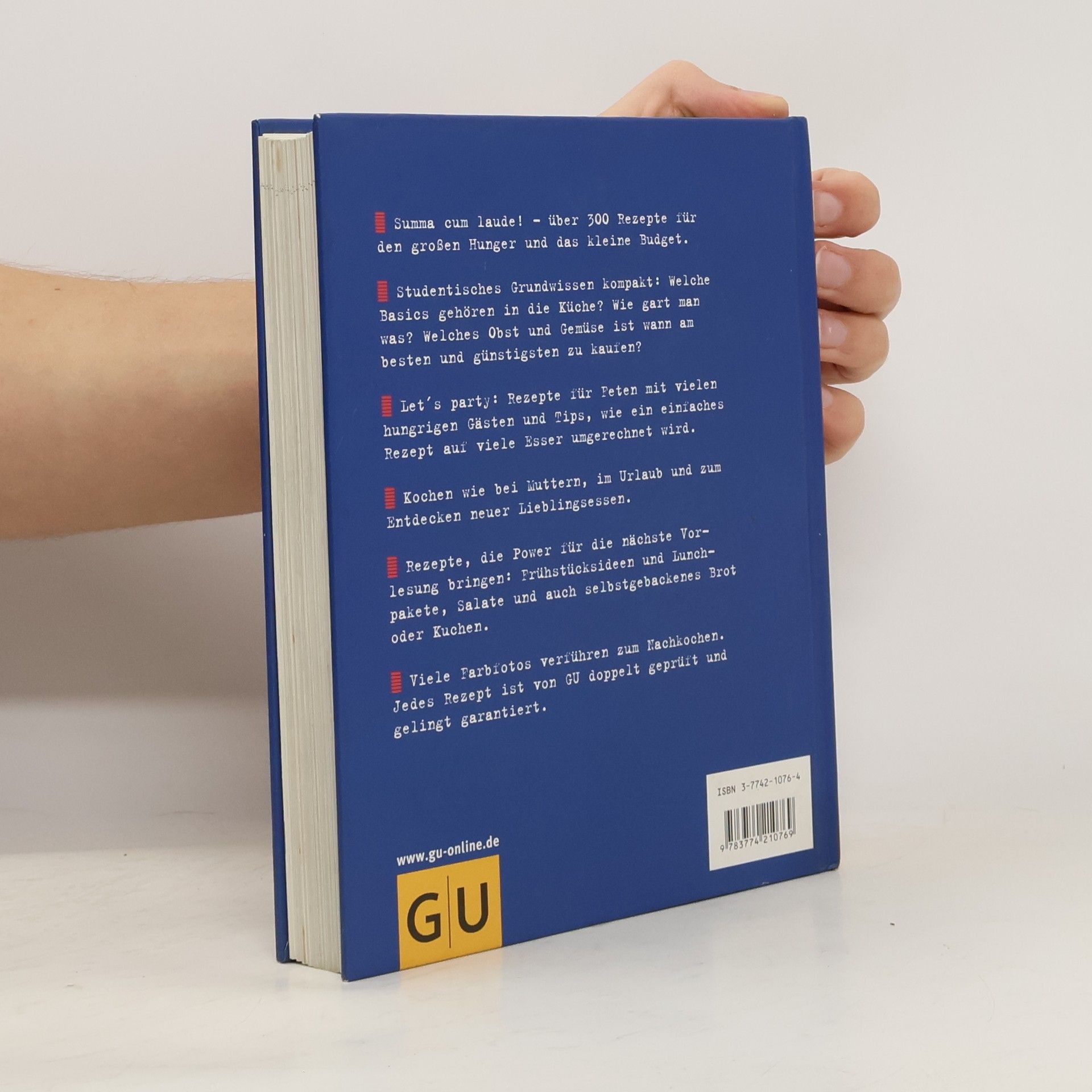 Die Alternative zu Mensa oder Tütensuppe. Das neue Grundkochbuch speziell für StudentInnen lehrt das Einmaleins des Kochens. Mit unkomplizierten und preiswerten Gerichten, die lecker schmecken und auch in der kleinsten Bude klappen. Vom Frühstück bis zum Dessert, vom Lunchpaket bis zur Fete, hier ist alles drin: Rezepte, Grundwissen, Tips zur gesunden Ernährung und praktische Küchentricks.§