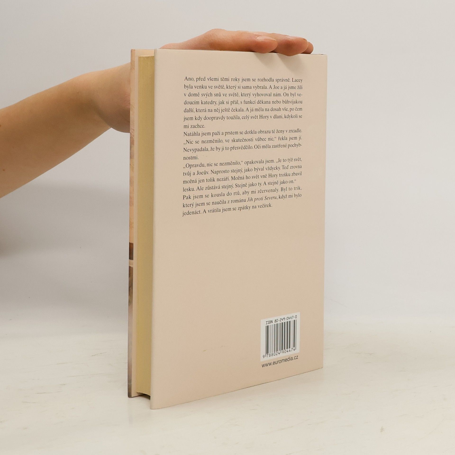 Psychologický román pro ženy o kořenech nepřiznané krize v dlouholetém vztahu amerického manželského páru, která vrcholí během jejich dovolené v Toskánsku. Hrdinka, poznamenaná tragickým zážitkem z dětství, vážně trpí strachem z neznámého prostředí a celý život žije s manželem na jednom místě, v malém městečku v horách, kde muž učí na škole a oba jsou příslušníky místní elity. Žena se za celý život nedokázala postavit tváří v tvář svému traumatu, nyní ale zmobilizuje své síly a rozhodne se jako zatěžkávací zkoušku podniknout cestu do Itálie, kam ji a jejího muže pozvali přátelé. Nové zážitky a noví známí dvojici namísto sblížení pozvolna odcizují, oba svůj minulý život začínají vidět v jiném světle a i o sobě samých se dozvídají netušené věci. Manžel v nekonvenční společnosti na čas podléhá půvabům intrikánské hostitelky, sama hrdinka intenzívně prožívá víc než přátelský vztah se známým malířem. Její okouzlení a malířova bezprostřednost jsou zkušebním kamenem dosavadního svazku a donutí ji uvědomit si, že citové pouto k manželovi je stále stejně pevné, nyní navíc zbavené nánosů letité přetvářky a nepochopení.