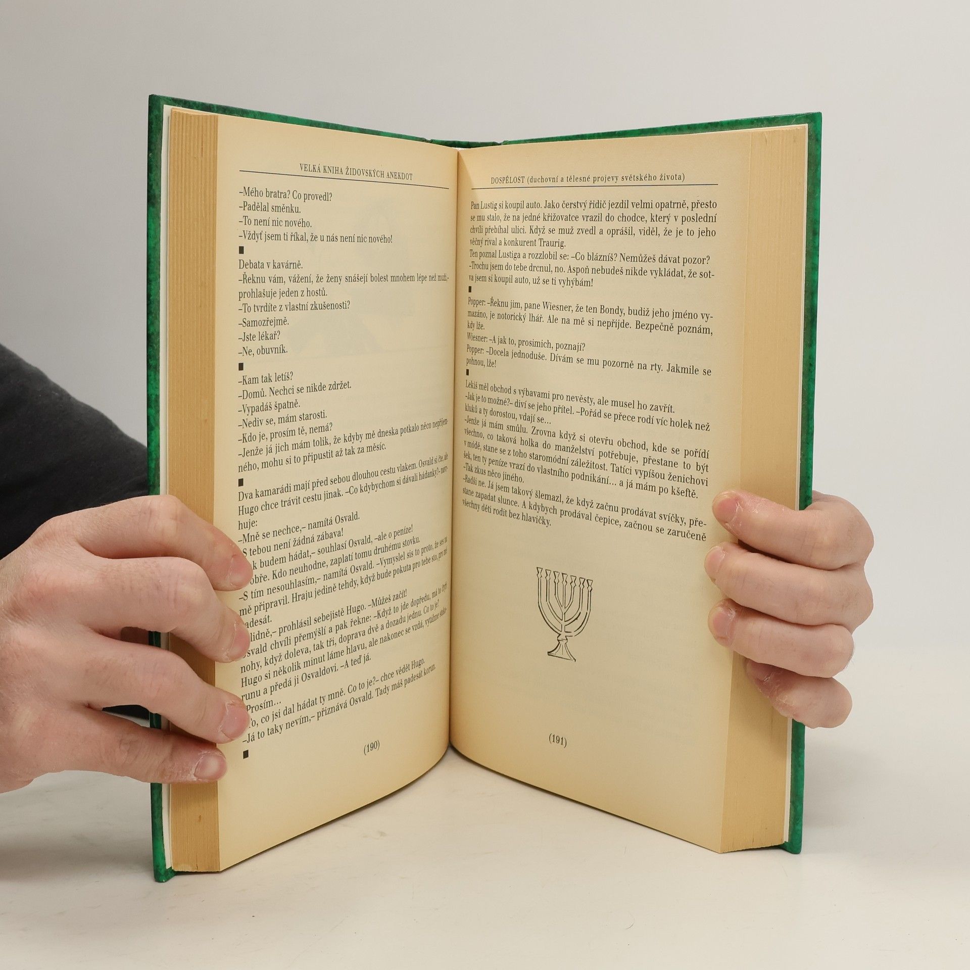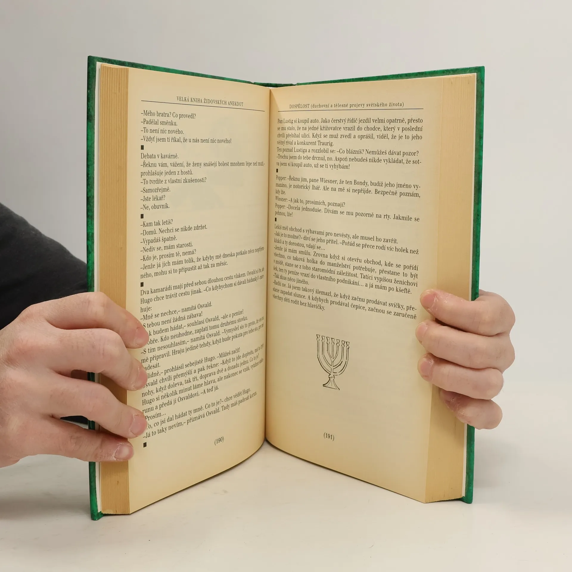 Rozsáhlá sbírka židovských anekdot sestavená z knižních sborníků, časopisů a ústního podání, sleduje život člověka od narození až do smrti.