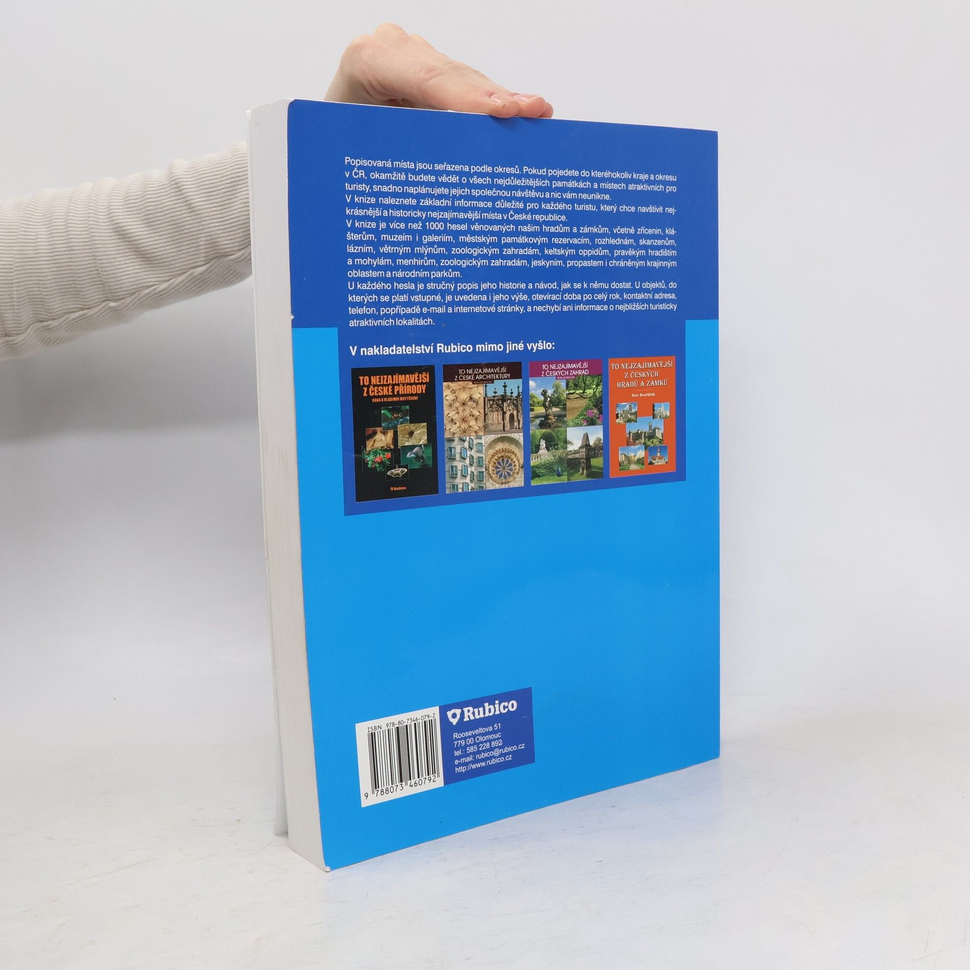 Popisovaná místa jsou seřazena podle okresů. Pokud pojedete do kteréhokoliv kraje a okresu v ČR, okamžitě budete vědět o všech nejdůležitějších památkách a místech atraktivních pro turisty, snadno naplánujete jejich společnou návštěvu a nic vám neunikne. V knize naleznete základní informace důležité pro každého turistu, který chce navštívit nejkrásnější a historicky nejzajímavější místa v České republice. Je zde více než 1000 hesel věnovaných našim hradům a zámkům, včetně zřícenin, klášterům, muzeím i galeriím, městským památkovým rezervacím, rozhlednám, skanzenům, lázním, větrným mlýnům, zoologickým zahradám, keltským oppidům, pravěkým hradištím a mohylám, menhirům, zoologickým zahradám, jeskyním, propastem i chráněným krajinným oblastem a národním parkům. U každého hesla je stručný popis jeho historie a návod, jak se k němu dostat. U objektů, do kterých se platí vstupné, je uvedena i jeho výše, otevírací doba po celý rok, kontaktní adresa, telefon, popřípadě e-mail a internetové stránky, a nechybí ani informace o nejbližších turisticky atraktivních lokalitách.