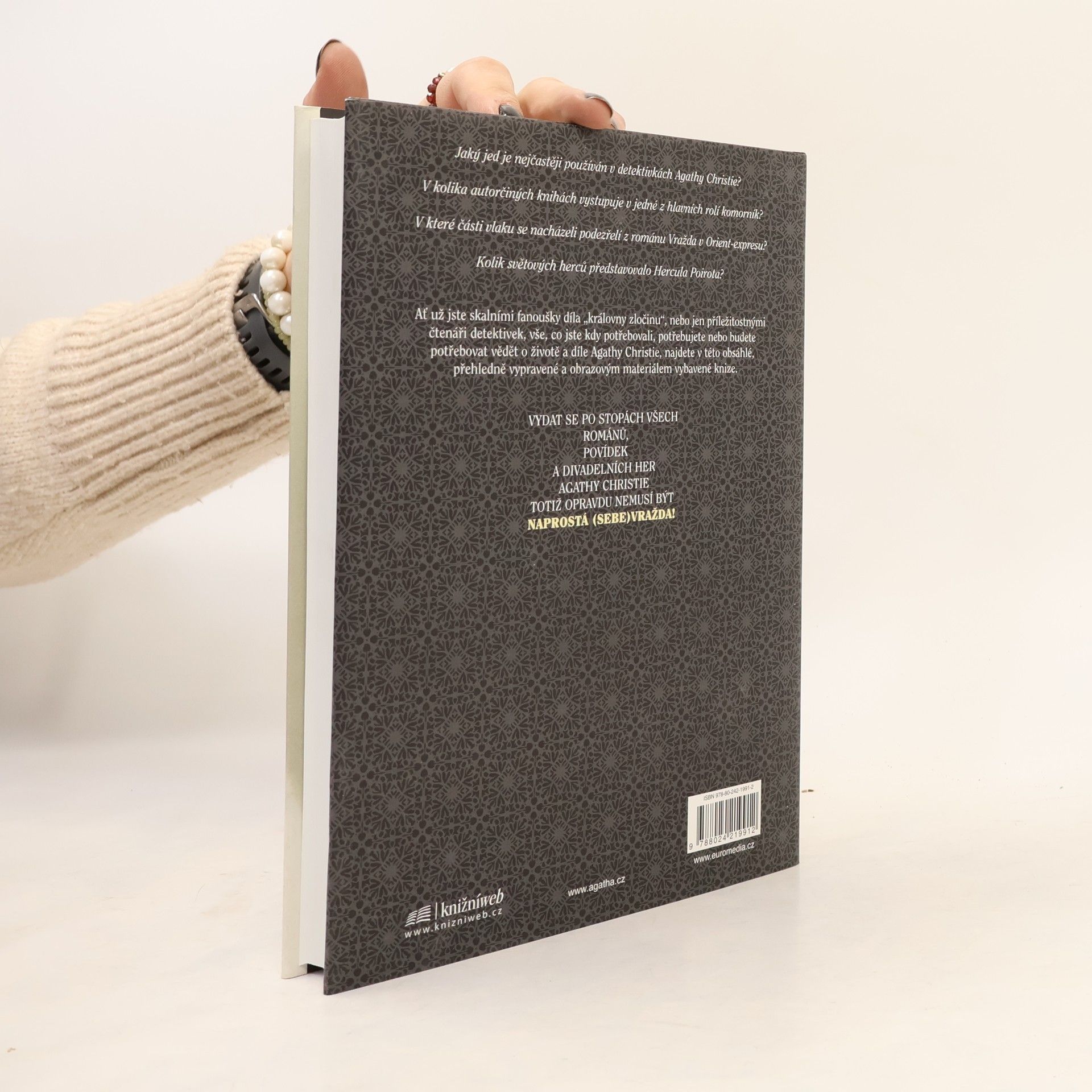 Zevrubný životopis Agathy Christie, přinášející nový pohled na spisovatelčino tajemné zmizení v roce 1926. - Detailní přehled všech detektivních románů, povídek a povídkových souborů s nástinem zápletky… a bez prozrazení rozuzlení! - Medailonky nejvýznamnějších a nejoblíbenějších postav. - Podrobné informace o divadelních, filmových a televizních adaptacích a o význačných hercích, kteří postavy z autorčiných detektivek nezapomenutelně ztvárnili. - Množství ilustrací, reprodukcí vzácných knižních obálek, plakátů a snímků z filmů.