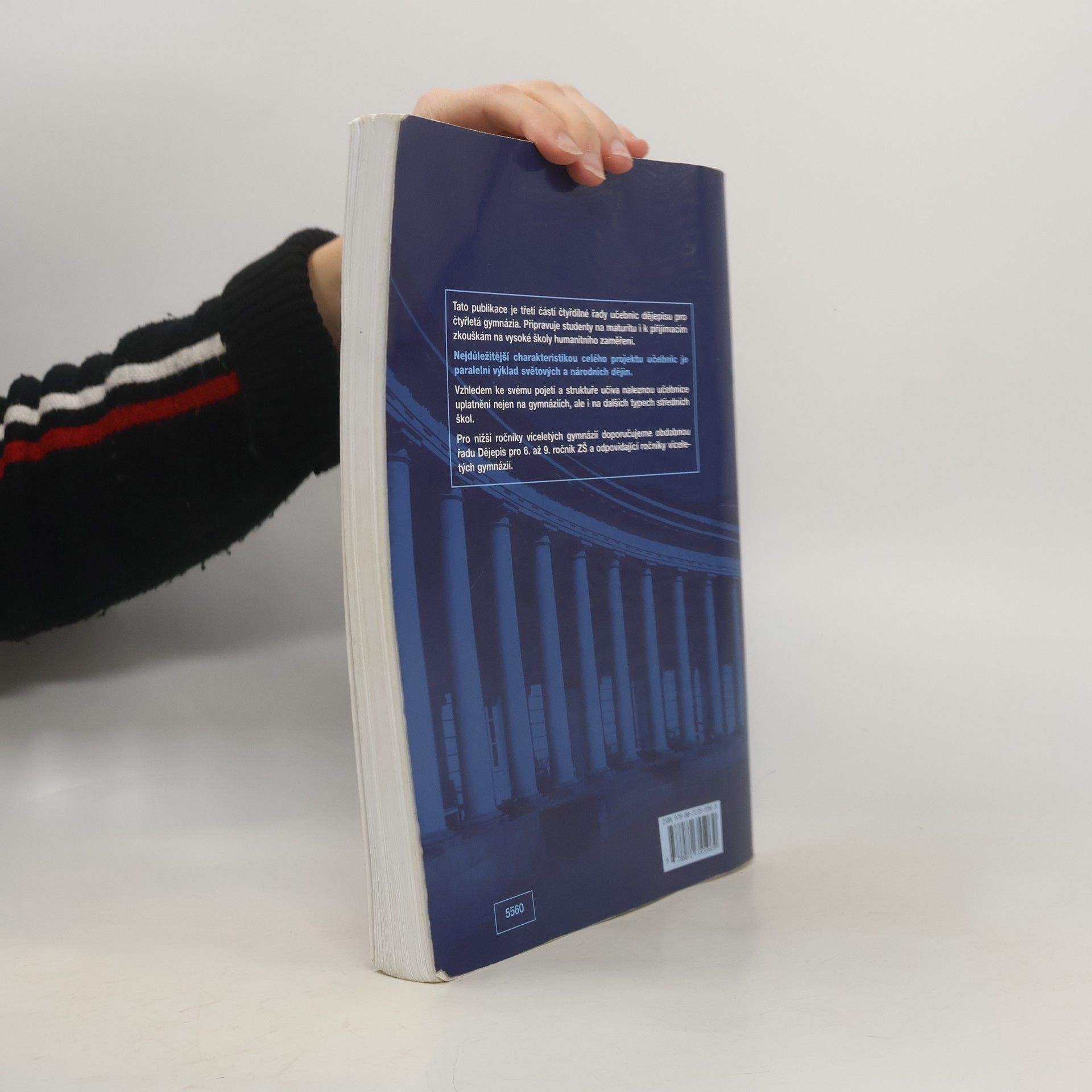 Třetí z řady učebnic dějepisu pro gymnázia a střední školy – uplatní se především na gymnáziích, ale i na dalších typech škol, neboť je v učebnicích graficky odlišen základní výklad od rozšiřujícího textu. Vzhledem k rozvržení učiva s důrazem na nové dějiny umožňuje i dobrou přípravu na VŠ. Kladem řady je její nepřetíženost fakty a především paralelně vedený výklad světových i českých dějin od nejstarších dob po současnost. Učebnice obsahují bohatý obrazový materiál, početné dějepisné mapy a náležitý didaktický aparát. Přední východ ●., Egypt ●., starověké Řecko ●., starověký Řím ●., Indie ●., Čína