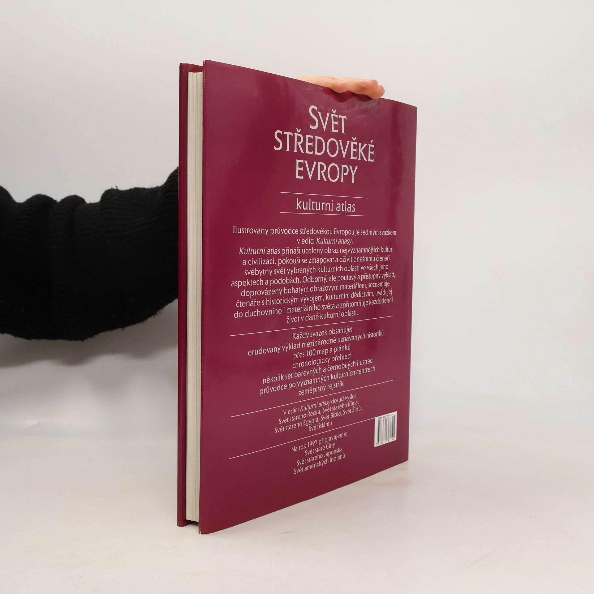 Tento atlas je přehledem evropské historie, kultury a společnosti v období od pádu římského císařství po objevení Ameriky koncem 15. století. Mapy zachycují postupné vytváření státních hranic až do současnosti, znázorňují stěhování národů, dobývání území, šíření křesťanství, vývoj v zemědělství. Pro jednoduchou orientaci je kulturní atlas doplněn chronologickými tabulkami, významovým slovníkem, bibliografií, zeměpisným slovníkem a rejstříkem.