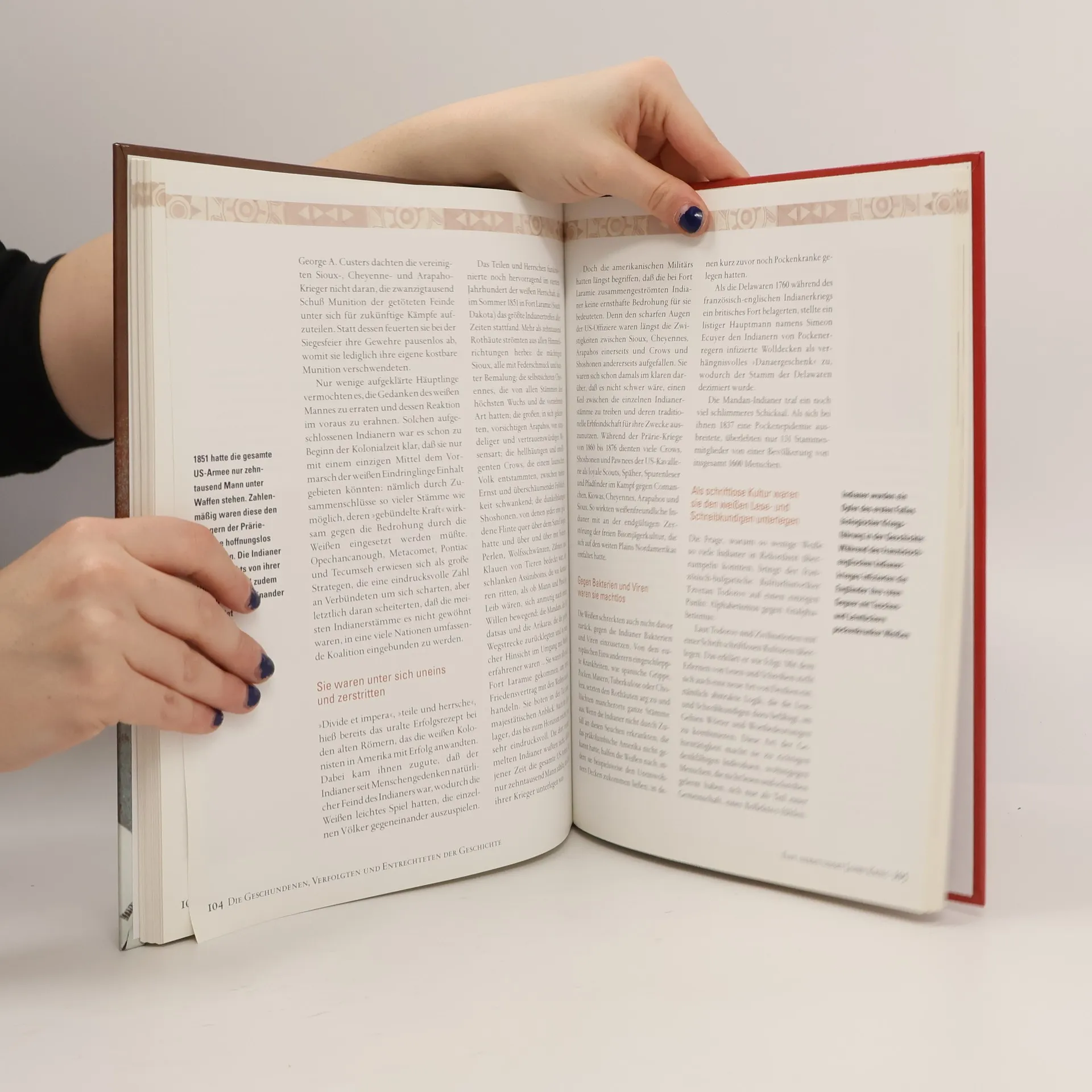 Einen Schwerpunkt dieser Gesamtdarstellung der Indianer im Überblick bildet das Thema der 1. Besiedlung Amerikas, für die bislang die Einwanderung aus Asien über die vereiste Beringstraße als gesicherte Erkenntnis galt. Neuere Funde werfen hier allerdings Fragen auf. Oth (zum Thema zuletzt: BA 10/88) diskutiert aktuelle Forschungsansätze, die die Urgeschichte in anderem Licht erscheinen lassen. Ebenso stellt er die bisherige Auffassung von der 'Entdeckung' des Kontinents durch Weiße in Frage. Es folgen Kapitel über die Überlebenskämpfe der Indianer gegen die Weißen, über traditionellen Alltag und Kultur sowie die heutige Lage der Ureinwohner. Das sehr ansprechend gestaltete Buch mit vielen farbigen und schwarz-weißen Abbildungen ist in übersichtliche Kapitel gegliedert und erleichtert die Orientierung durch Textzusammenfassungen im Fettdruck. Wie kürzlich 'Indianer' (BA 1/99) von L. Zimmerman ist schon für Jugendliche und ältere Schüler ab Sekundarstufe I als Einführung brauchbar. (2 S).
