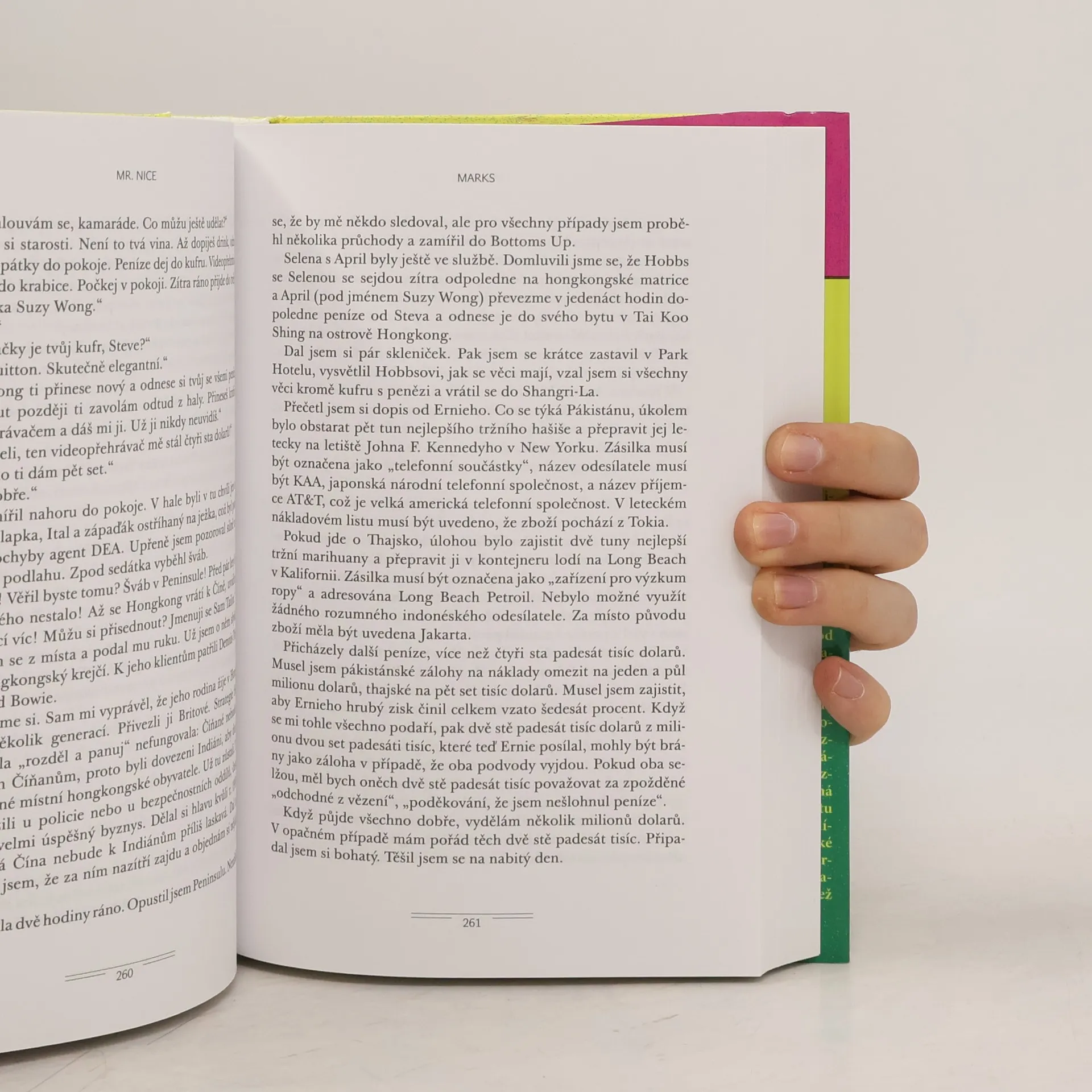 Kniha popisuje pravdivý příběh britského pašeráka drog, hudebníka a spisovatele Howarda Markse, jehož život je plný fascinujících peripetií a zákulisí obchodu s drogami. Narodil se v roce 1945 v Kenfig Hill a studoval na Oxfordu, kde se stal „nejvzdělanějším drogovým magnátem všech dob“ (Daily Mirror). V roce 1996 vydal autobiografii, která se stala mezinárodním bestsellerem a byla přeložena do několika jazyků. V roce 2001 následovalo vydání knihy The Howard Marks Book of Dope Stories. Howard Marks se proslavil také svými živými vystoupeními, včetně legendární komediální show An Audience with Mr Nice, která stále vyprodává scény po celé Británii. Vlastní internetové stránky, nahrávací studio a firmu na obchod s konopnými semínky. Přispívá do časopisů jako Loaded, Observer, Evening Standard, Time Out, GQ a Guardian, kde se zasazuje o legalizaci rekreačních drog. V 80. letech používal třiačtyřicet falešných jmen a vlastnil dvacet pět společností. Na vrcholu kariéry pašoval více než třicetitunové zásilky marihuany a spolupracoval s různými organizacemi. Byl zatčen a odsouzen na 25 let, z toho si odpykal sedm let. Jeho příběh je vyprávěn s upřímností, humorem a kouzlem.