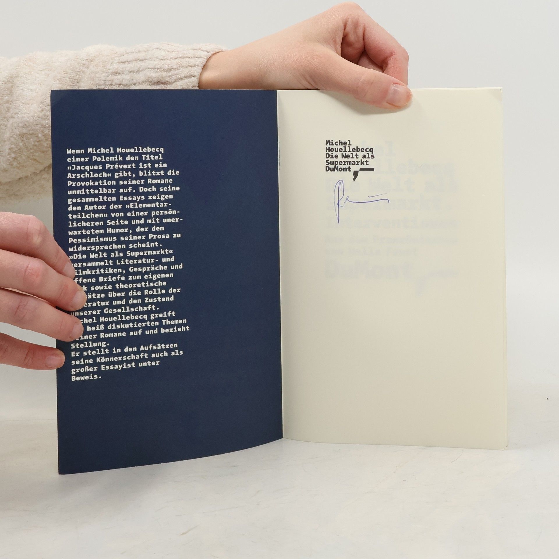 'Die Welt als Supermarkt' versammelt Literatur- und Filmkritiken, Gespräche und offene Briefe zum eigenen Werk sowie theoretische Aufsätze über die Rolle der Literatur. Houellebecq greift die heiß diskutierten Themen seiner Romane auf und bezieht Stellung zum Klonen, zur Pornographie, zum Vorwurf der Frauenfeindlichkeit. Michel Houellebecq stellt in den Aufsätzen unter Beweis, daß seine Thesen über die Provokation hinausgehen.