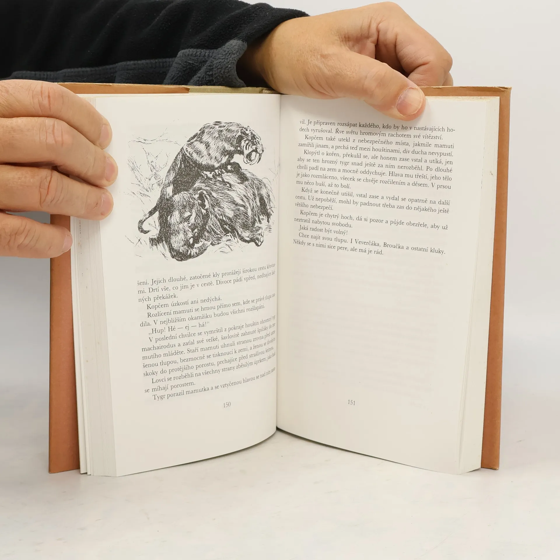 Tento příběh vypráví o kmeni pravěkých lidí ,,Lovců mamutů“. Udál se asi před dvaceti až třiceti tisíci lety. Tehdy žila na Bílé skále tlupa pravěkých lidí. Tehdy ovládali jednoduchou řeč a doplňovali ji posunky a mimikou v obličeji. Věděli, že je oheň nejen zahřeje, ale dokáže upéct maso a chránit před divokou zvěří. Oheň hořel před vchodem do jeskyně, aby dovnitř nemohli šelmy. Tehdy ho ještě neuměli rozdělat,tak spoléhali na přírodu a oheň donášeli. Příběh nám bude vyprávět o tom,jak lovili zvěř a jak z ní vše dokázali zužitkovat. Vnitřnosti zvěře jedli syrové, protože byly ještě teplé. Stažené kůže hned zpracovávali ženy a děti. Lovili například zubry, lišky, ryby, ale také vlky a mamuty. Věřte, chytit takového mamuta je věc těžká, na kterou se museli dlouho připravovat. Museli nejdřív vykopat obrovskou jámu, do které toho mamuta musely vehnat. Učili se také vyrábět si nástroje, jako je například kámen opracovaný do tvaru slzy (pazourek). Díky pazourku,který poté použili na rozbíjení kamenů, dokázali vykřesat oheň. Ale to chtělo zručnost a trpělivost. Později se jim podařilo dokonce rozdělat oheň za pomoci kousku dřeva. Oheň byl totiž v pravěku největší vynález pravěkých lidí a měl pro ně opravdu obrovský význam. Dovídáme se tu také o cizích tlupách, například jak mezi sebou bojovali o území, o kořist atd. Při lovu nebo boji o území zahynula velká spousta pravěkých lidí. Byl to pro ně boj na život a na smrt.