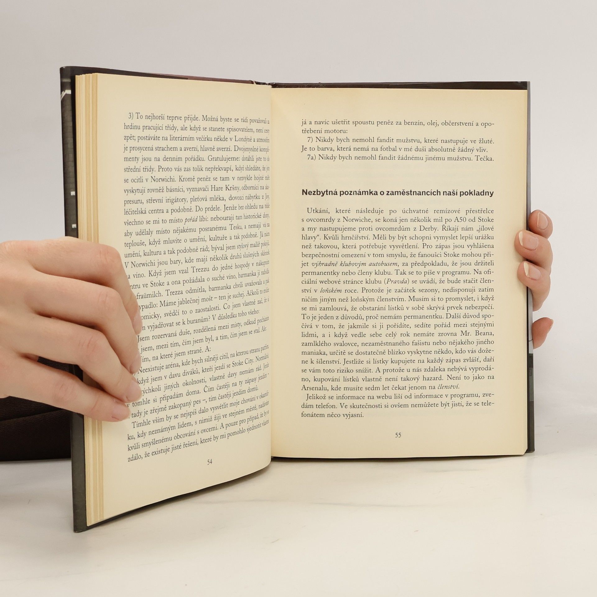 Dosti otevřená a upřímná zpověď zarytého fanouška anglického fotbalového týmu Stoke City. V bezmála 150-leté historii klubu (byl založen r. 1863) nenajdeme mnoho úspěchů. Hrnčíři (The Potters) ze Stoke-on-Trent téměř vždy byli a jsou i nyní zcela obyčejným, nijak výjimečným mužstvem, které v probíhající sezóně (2005-2006) hraje druhou nejvyšší anglickou fotbalovou ligu, Championship. Malíř pokojů středního věku Stephen Foster patří k těm bezpočetným fotbalovým příznivcům, kteří nelitují peněz ani námahy, aby mohli nejen na domácím hřišti, ale i na stadionech po celé Anglii vidět a podpořit svoji milovanou i zatracovanou "jedenáctku" v pruhovaných červeno-bílých dresech. Formou čtivého a poutavého deníku, od zápasu k zápasu, nám autor představí celý úspěšný ročník 2001-2002, kdy se Stoke City podařilo postoupit z třetí ligy, zároveň nám možná i odpoví na otázky, jak a proč se člověk stává fotbalovým fanouškem.