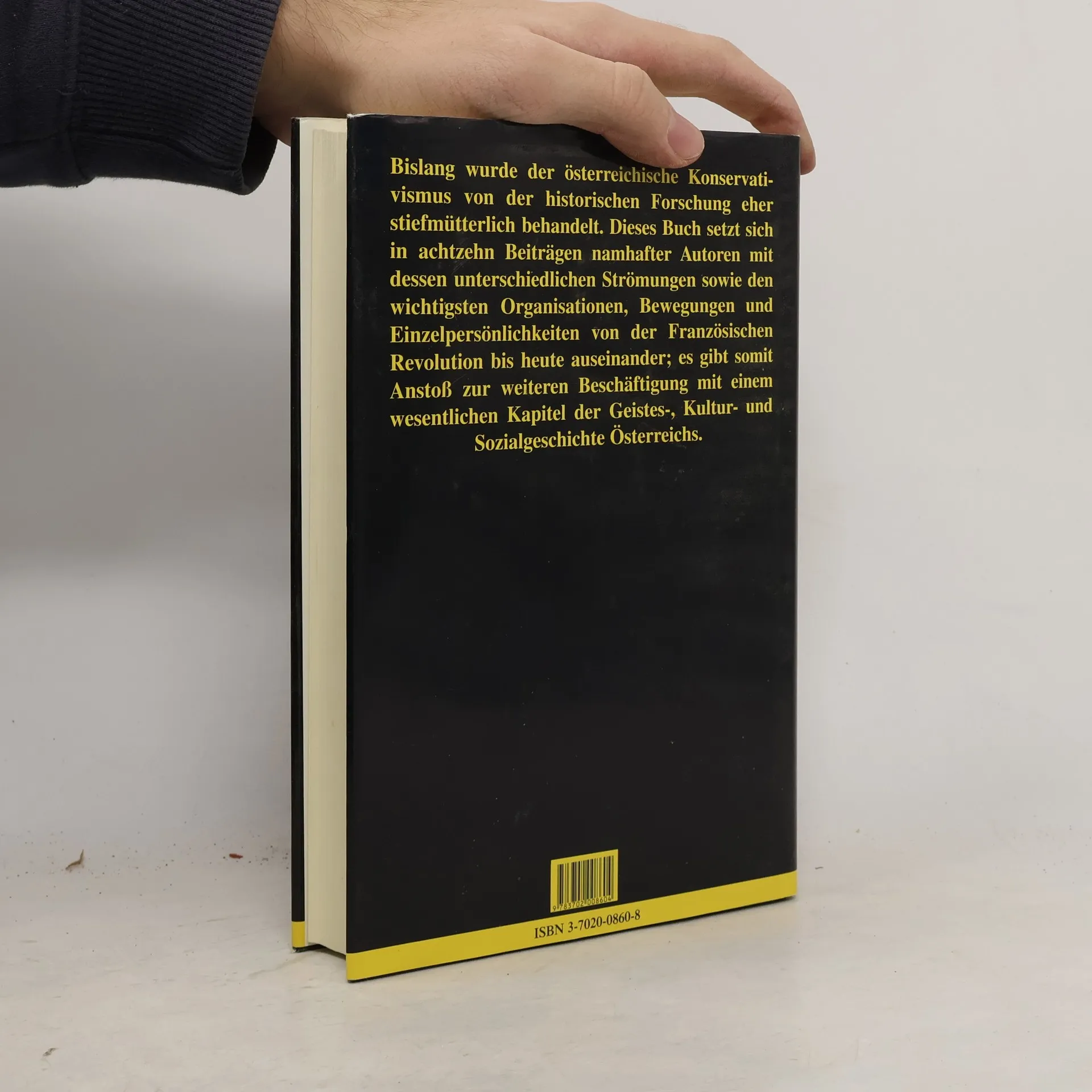 In diesem Band widmen sich namhafte Autoren in 18 verschiedenen Beiträgen unter-schiedlichen Strömungen des Konservativismus und seinen wichtigsten Organisationen, Bewegungen und Einzelpersönlichkeiten im politischen, gesellschaftlichen und kulturellen Leben Österreichs von der Zeit der Französischen Revolution bis heute. Von Clemens Maria Hofbauer und der politischen Romantik in Wien um Friedrich Schlegel und Adam Müller über Klemens Fürst Metternich und Friedrich von Gentz spannt sich der Bogen bis zur christlichen Sozialreform von Karl Vogelsang, der Ganzheitslehre Othmar Spanns und dem liberalen Konservativismus Friedrich August von Hayeks. Konservative Gruppierungen und Parteien in der Zeit von 1860–1918, in der Ersten Republik und heute werden ebenso behan- delt wie der katholische Widerstand gegen den Nationalsozialismus und die konservativen Strömungen in der österreichischen Literatur, wofür Autoren wie Josef Roth, Hugo von Hofmannsthal oder Alois Brandstetter stehen. Weitere Themen sind der Legitimismus, die katholische Kirche, das Haus Habsburg und die Paneuropabewegung.