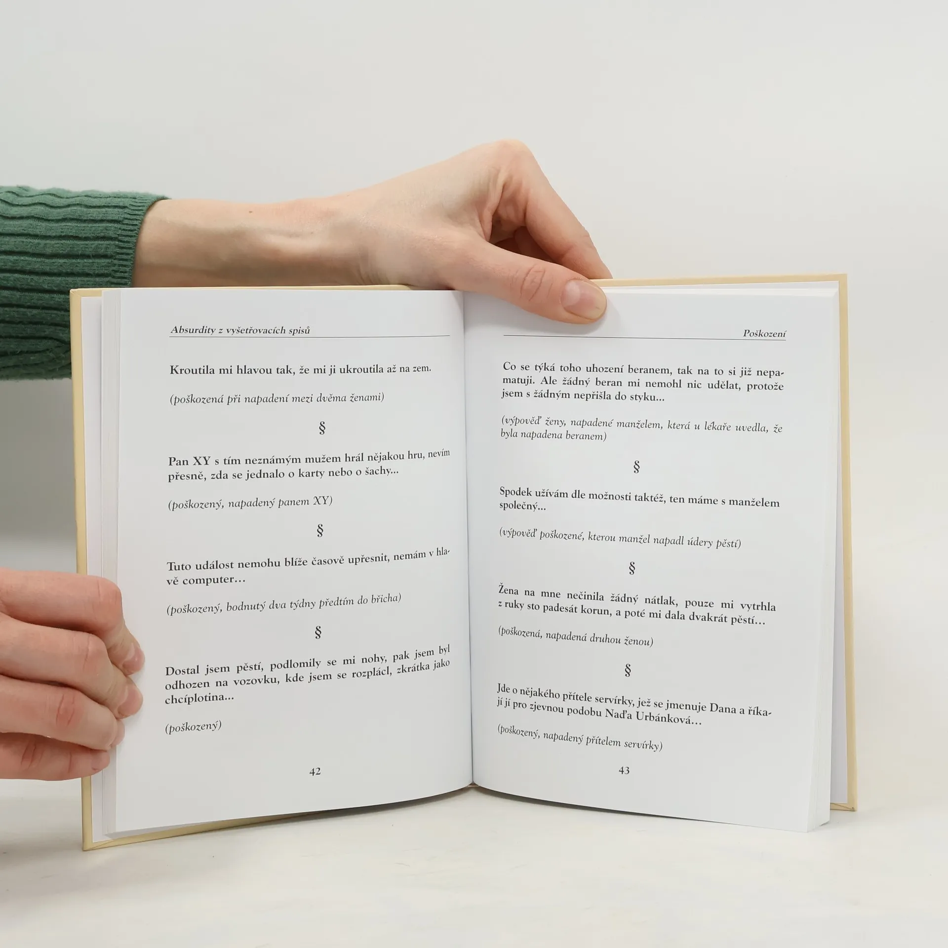 Kdo z nás nezatouží alespoň občas nahlédnout do třinácté komnaty, otevřít tajnou skřínku anebo projít zrcadlem a ocitnout se na té druhé straně? Vyšetřovací spisy patří bezesporu k těm materiálům, které člověk míjí, aniž by to znamenalo, že ho nezajímají – spíše naopak. Skrývají v sobě ledaco smutného, ledaco vážného, ale mezi tím občas zajiskří. Právě tyto momenty zachytil MUDr. Josef Pleskot a shrnul do publikace Absurdity z vyšetřovacích spisů. Není totiž bez zajímavosti, že i v těch černých polohách života lze někdy najít trochu té legrace.