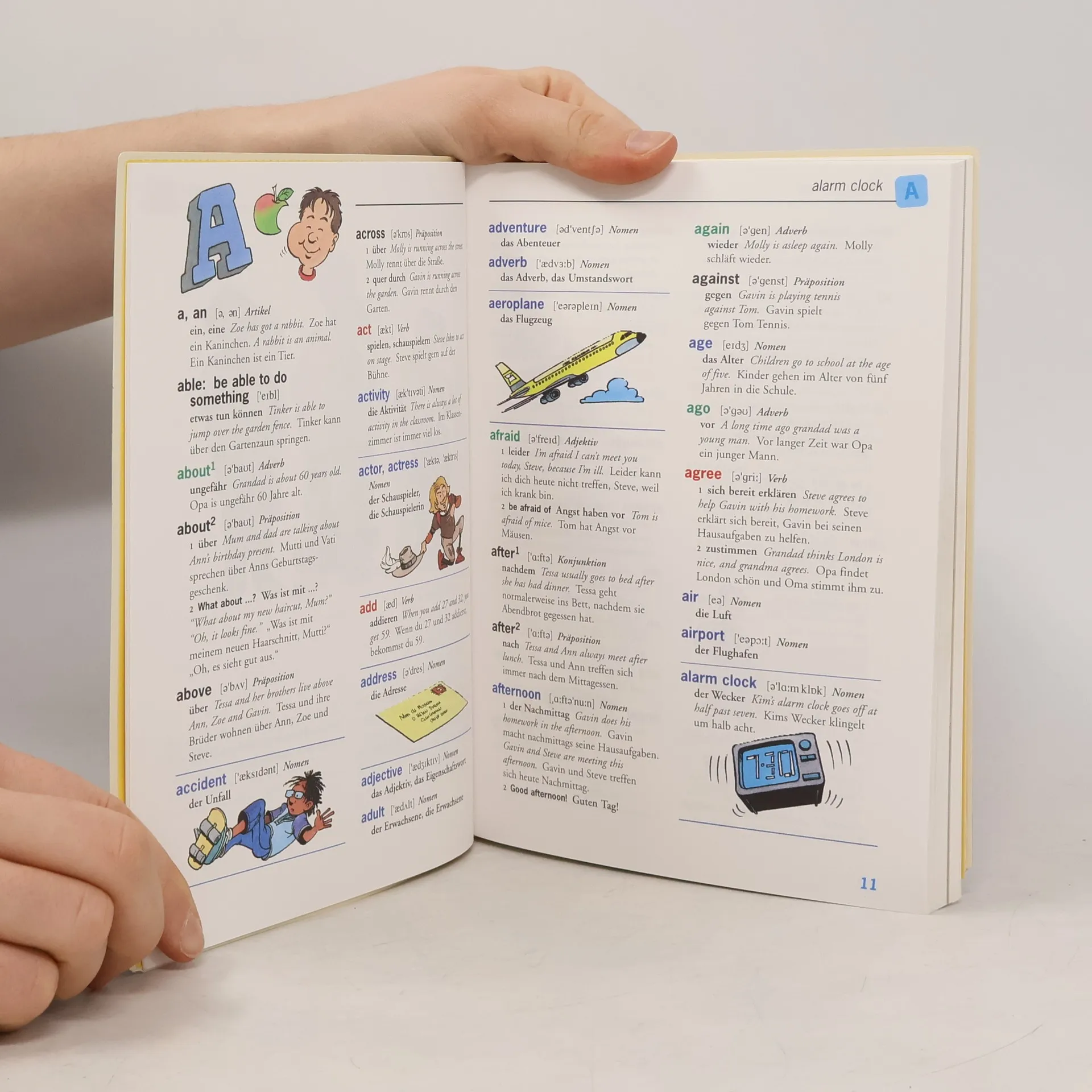 Das durchgehend farbig illustrierte Wörterbuch für den Anfangsunterricht enthält im englisch-deutschen Teil ca. 2300 Stichwörter und Wendungen, die das Vokabular bis zum dritten Englischjahr abdecken. Das benutzerfreundliche Lay-out stellt die Wortklassen unterschiedlich farbig dar und erleichtert so das Auffinden der Wörter. Bei jedem Stichwort ist die internationale Lautschrift angegeben, alle unregelmäßigen Formen werden genannt. Einfache Beispielsätze erläutern Stichwort und Übersetzung. Der thematische Teil mit Zeichnungen erschließt das Vokabular zu Wortfeldern wie Wohnen, In der Schule, Sport oder Freizeit und enthält eine Minigrammatik.