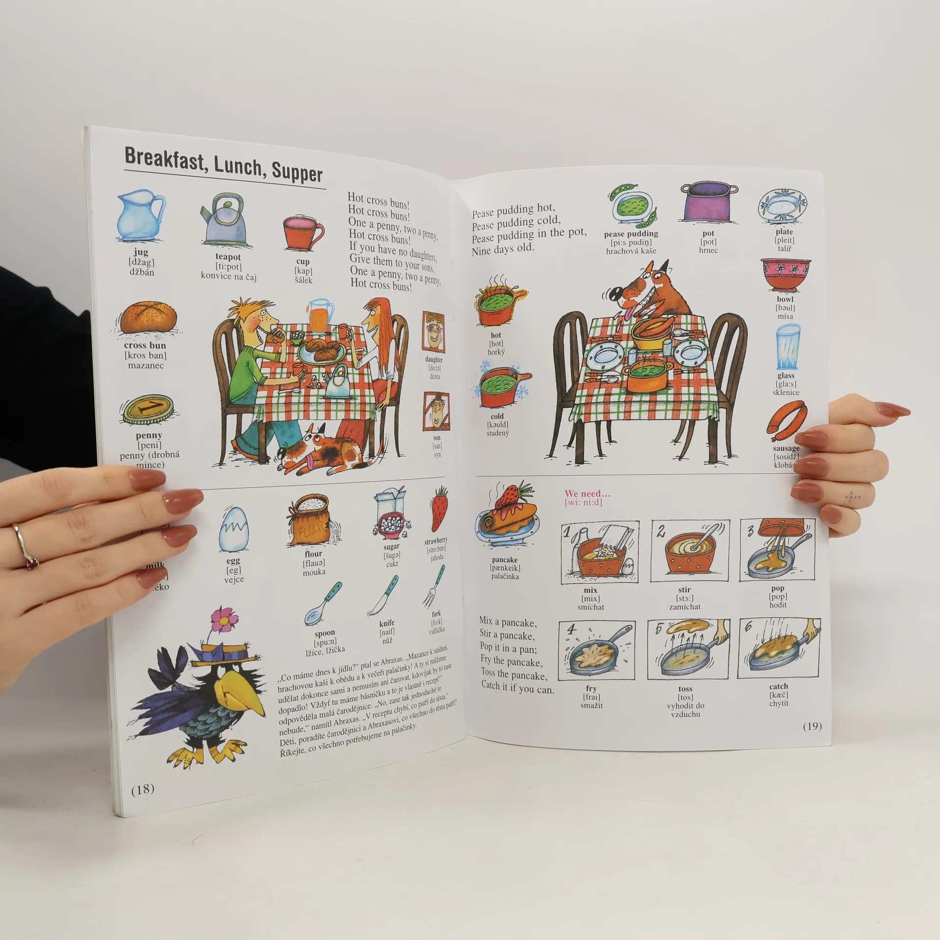 Bohatě ilustrovaná obrázková knížka seznámí malé čtenáře, kteří se začínají učit anglicky, s dětskými říkadly, jež se v Anglii učí jedna generace dětí za druhou, známými nursery rhymes. Na textu říkadel jsou založena i jazyková cvičení a slovní zásoba. Doplněno slovníčkem s výslovností a stručným přehledem použitých gramatických jevů.