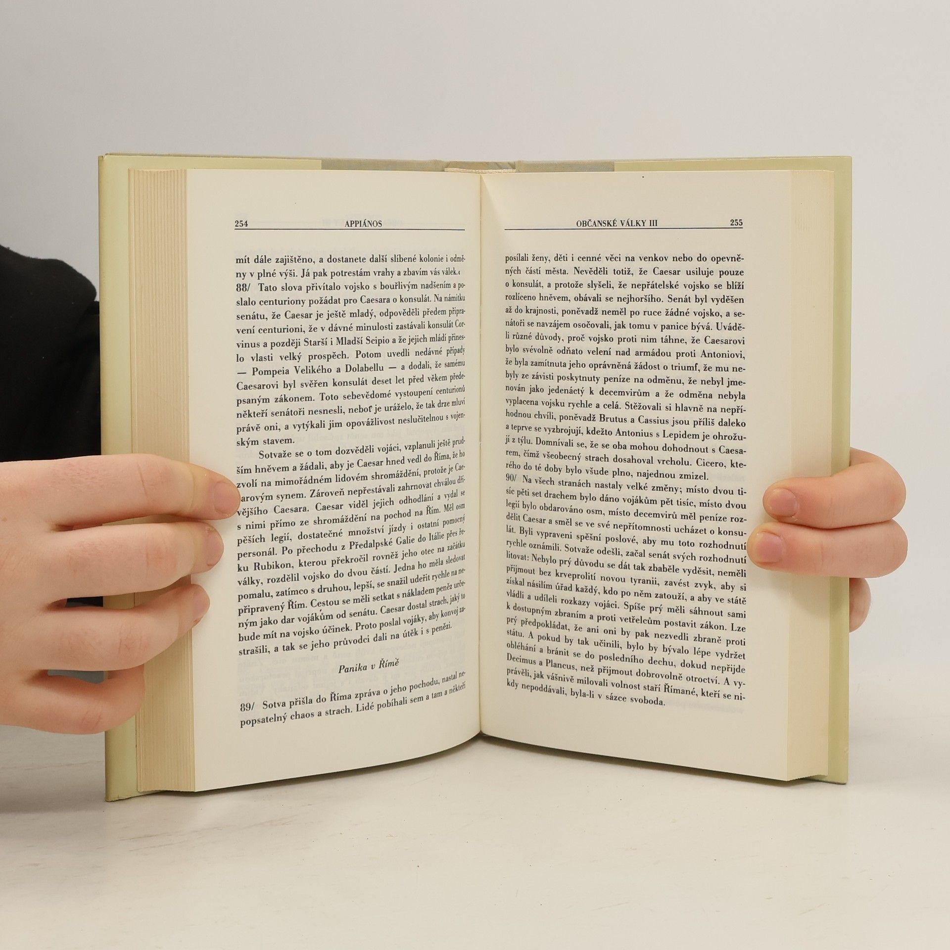 Římské dějiny II - Občanské války. Alexendrijský Řek Appiános, narozený na sklonku 1. století našeho letopočtu, vylíčil nejen vznik římského impéria a jeho rozpínavost, nýbrž i dějiny římských občanských válek. V pěti knihách, které jim věnoval, sleduje dlouhou a téměř nepřetržitou řadu sociálních a politických konfliktů od poslední třetiny 2. století př. n. l. až do roku 35 n.l. Hnutí bratří Gracchů, kteří své reformy zaplatili životem, válka se spojenci, politické vyrovnání mariovců a sullovců, vzpoura otroků vedených Spartakem - to jsou úseky z římských dějin, o ncihž Appiános pojednává podrobně i se zaujetím v první knize. Dále pokračuje scénami z bojů mezi Caesarem a Pompeiem, Caesarovým vítězstvím i jeho vraždou. Ještě větší napětí vkládá do vyprávění o marném zápase Bruta a Cassia za republikánskou svobodu. Nečekané zvraty provázejí stejně nečekaný a energický vstup devatenáctiletého Octaviana, Caesarova adoptivního syna a pozdějšího císaře Augusta, do neklidného politického života po Caesarově smrti... Ve svém díle se Appiános zaměřuje na významné politické osobnosti - v souladu se starověkou koncepcí historie je totiž povaužje za hlavní činitele dějin - a přibližuje čtenáři jejich velikost nebo malost, odhaluje příčiny a souvislosti jejich vítězství i proher, klade závažné otázky a snaží se nalézt a nalézá zajímavé, i když mnohdy velmi subjektivní odpovědi.