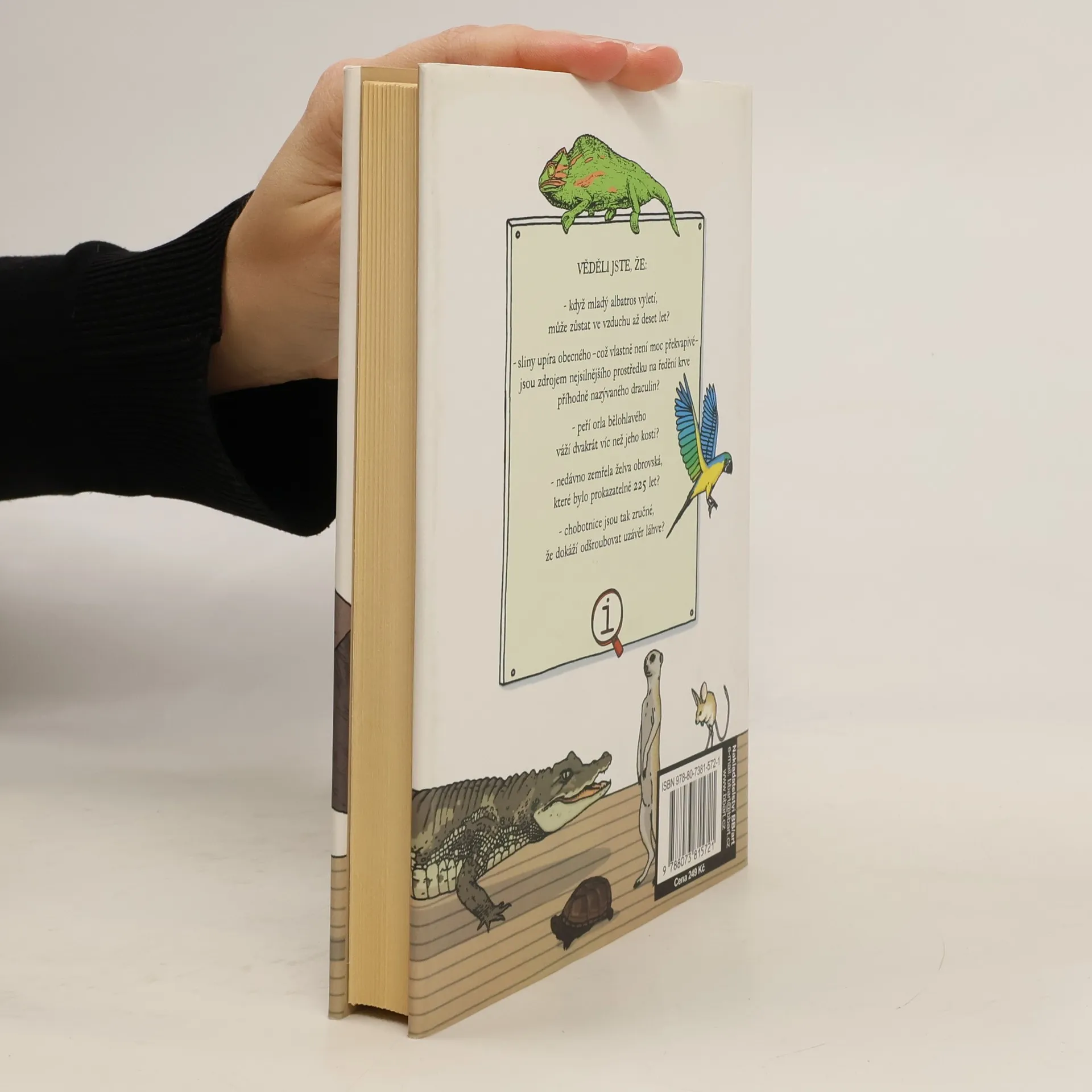 Věděli jste například že: když mladý albatros vyletí, může zůstat ve vzduchu až deset let? Sliny upíra obecného – což vlastně není moc překvapivé – jsou zdrojem nejsilnějšího prostředku na ředění krve příhodně nazývaného draculin? Peří orla bělohlavého váží dvakrát víc než jeho kosti? Nedávno zemřela želva obrovská, které bylo prokazatelně 225 let? Pokud ne, přečtěte si vtipný, fakty nabitý bestiář, který jistě potěší všechny milovníky zvířat.