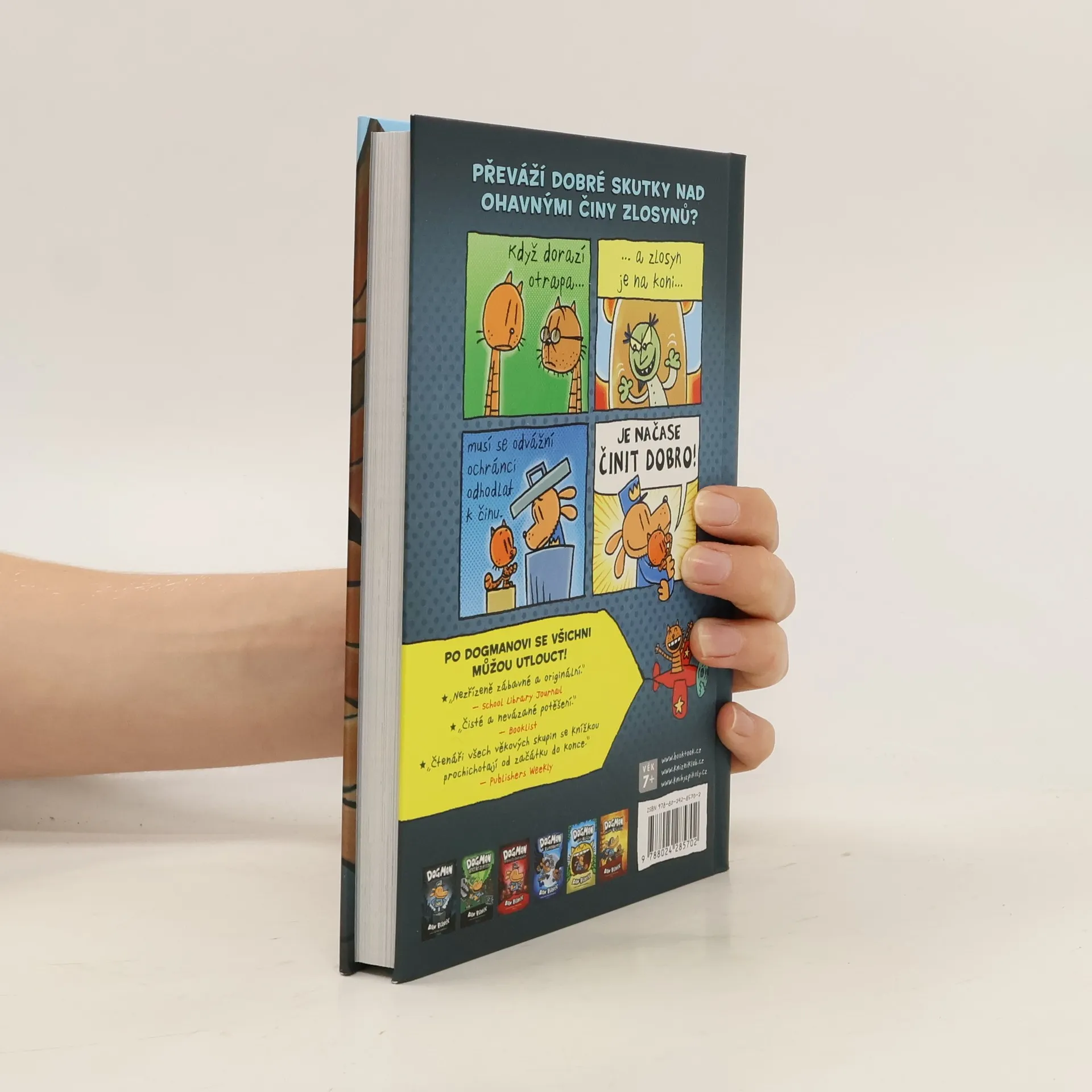 Je to vůbec možné? Zrodil se zbrusu nový zákeřný padouch! Říká si Dr. Yják a pořád tvrdí, že už ho známe (ale my víme své!). Rozhodl se využít Dogmanovy největší slabosti – lásky k míčkům! Jaká podlost. Dogmanovi kámoši Peťulka a Restart si ale usmyslí, že největšího psího policajta všech dob pořádně vytrénují, aby mičudovému pokušení odolal. Mezitím kujou své proradné pikle i jiní zloduši, nám už dobře známá parta, která si říká BLECHY… Jak to všechno dopadne? A jakou roli v tom hraje Komandér Cupcake? Dozvíte se v knize!