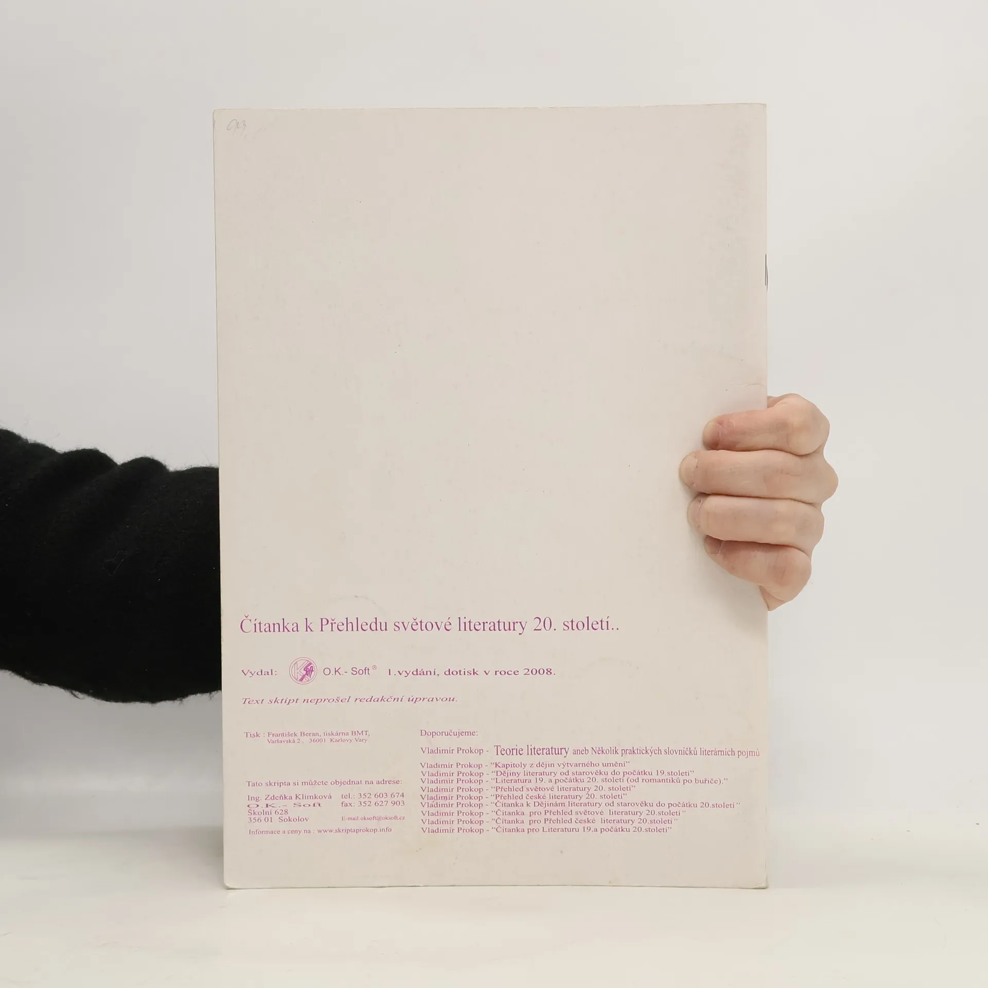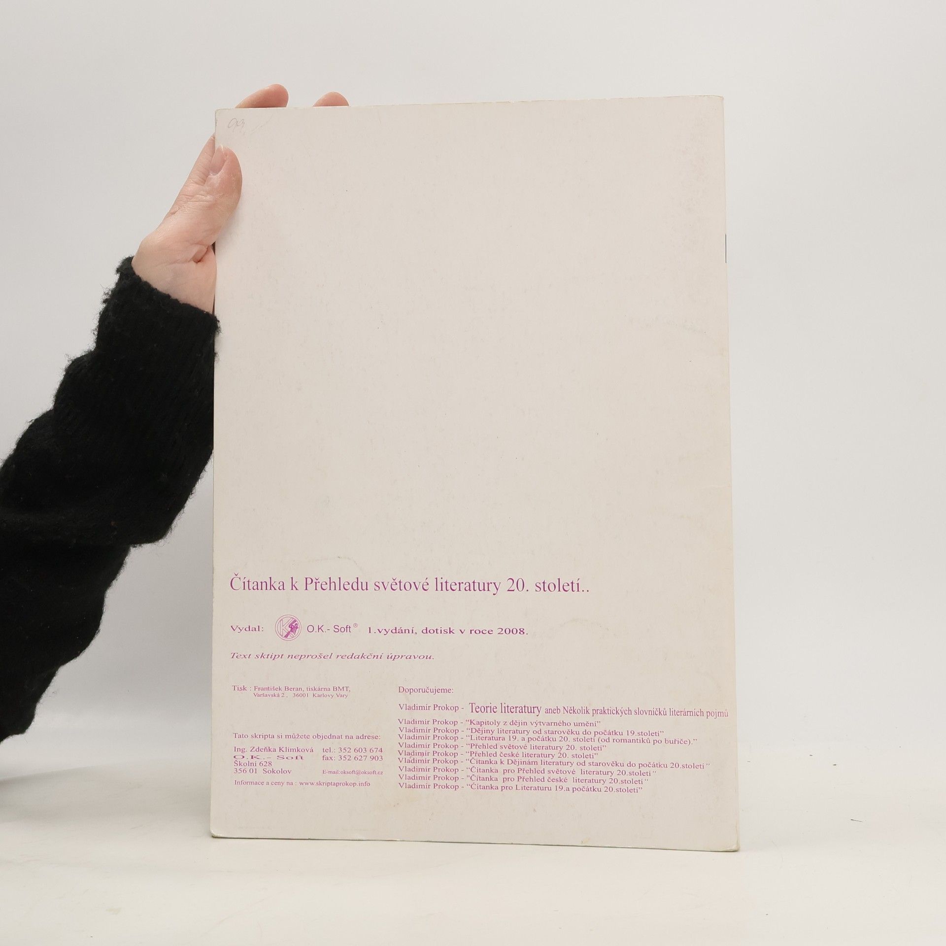 Čítanka k Přehledu světové literatury 20. století, Vladimír Prokop