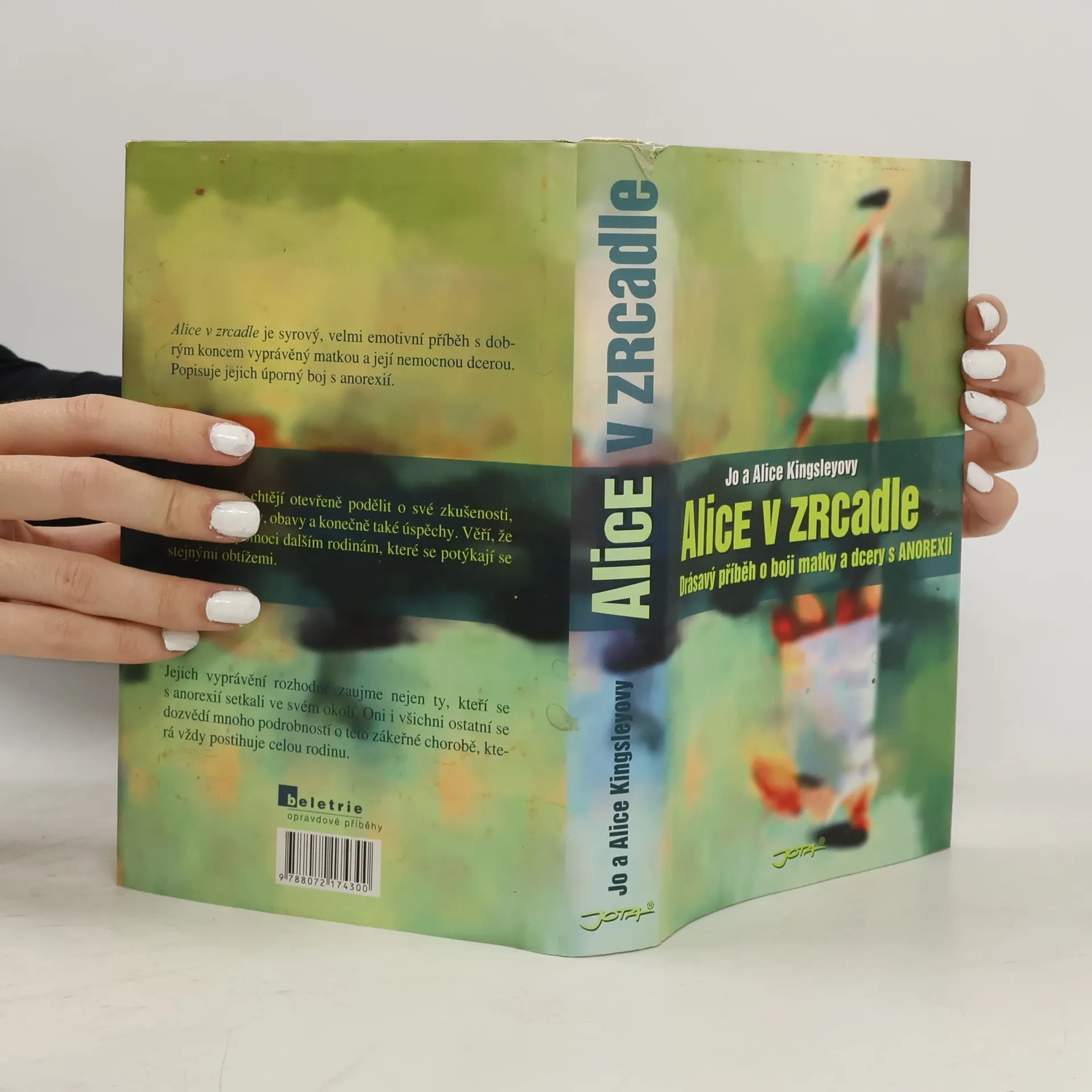 Drásavý příběh o boji matky a dcery s anorexií. V deseti letech byla Alice bezstarostná, veselá dívka s velkým smyslem pro humor. Všichni, kdo ji znali, ji měli rádi. V jedenácti se u ní začaly objevovat zvláštní rituály, které přerostly v obsesivně kompulzivní poruchu. Když jí bylo čtrnáct, potíže s nutkavým chováním se změnily v anorexii. Dnes je Alici devatenáct let a pomalu se uzdravuje. V knize, kterou se chystáte číst, se její matka Jo ohlíží zpět na uplynulých devět let života a podrobně popisuje cestu krajinou „Planety Anorexie", což je její vlastní označení dceřiny nemoci. S vděkem vzpomíná na podporu, které se jí dostalo od profesionálů i blízkých, ale rozhodně nezapomíná na dlouhá období zoufalství, pocitů viny, hněvu a především hrůzy, kterou prožívala jako milující matka trpící dcery. V druhé části najdete stejný příběh sepsaný z pohledu Alice, která živě a neobyčejně otevřeně hovoří o svých pocitech, nemoci, léčbě a postupném úniku ze spárů zákeřné anorexie. Setkáte se s jejími přáteli, spolupacienty a dozvíte se mnoho zajímavého o tom, jak vnímala svůj vztah s matkou, kamarádkami a sestrami. V knize Alice v zrcadle Jo a její dcera nabízí pomoc všem, kdo zažili nebo ještě stále prožívají podobné trápení, všem, kdo se s láskou starají o anorektické dítě.