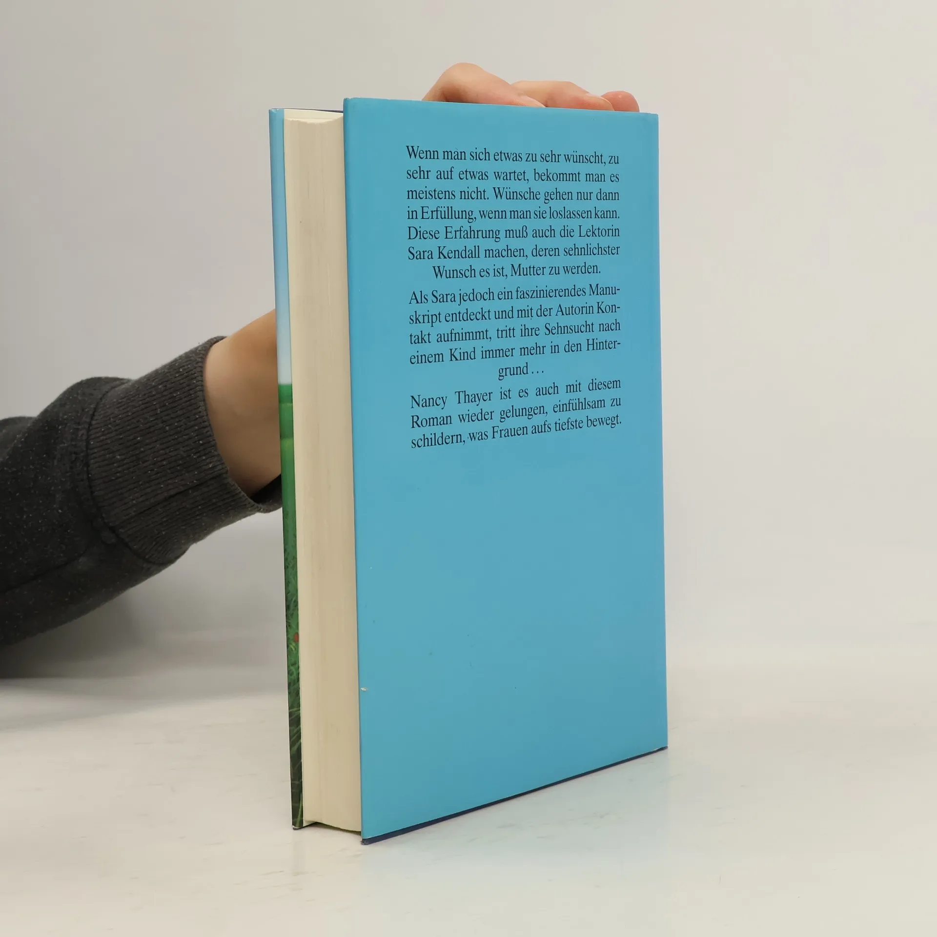 Sara führt eine glückliche Ehe, doch der Wunsch nach einem Kind bleibt unerfüllt. Trotz aller Versuche, einschließlich magischer Rituale und Operationen, droht ihre Ehe zu zerbrechen. Eine ungewöhnliche Frau hilft ihr schließlich auf unerwartete Weise. Nancy Thayer beschreibt einfühlsam den Umgang mit diesem tiefen Wunsch.