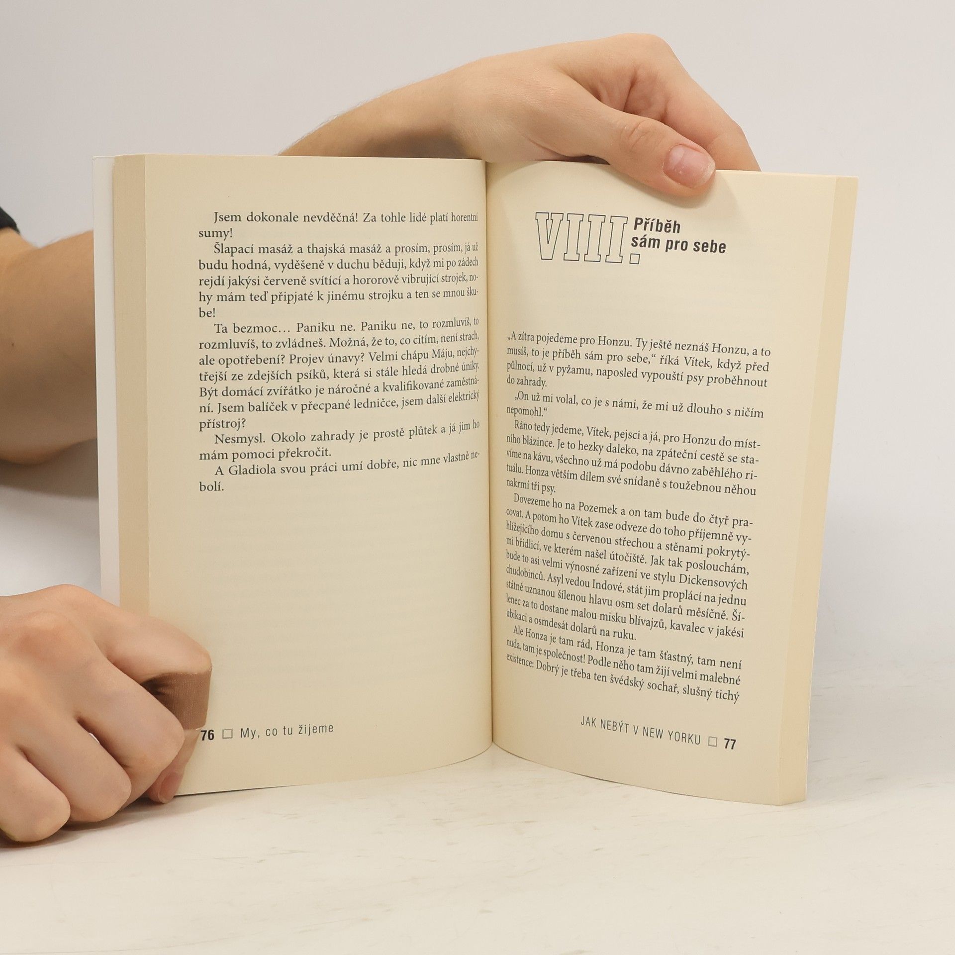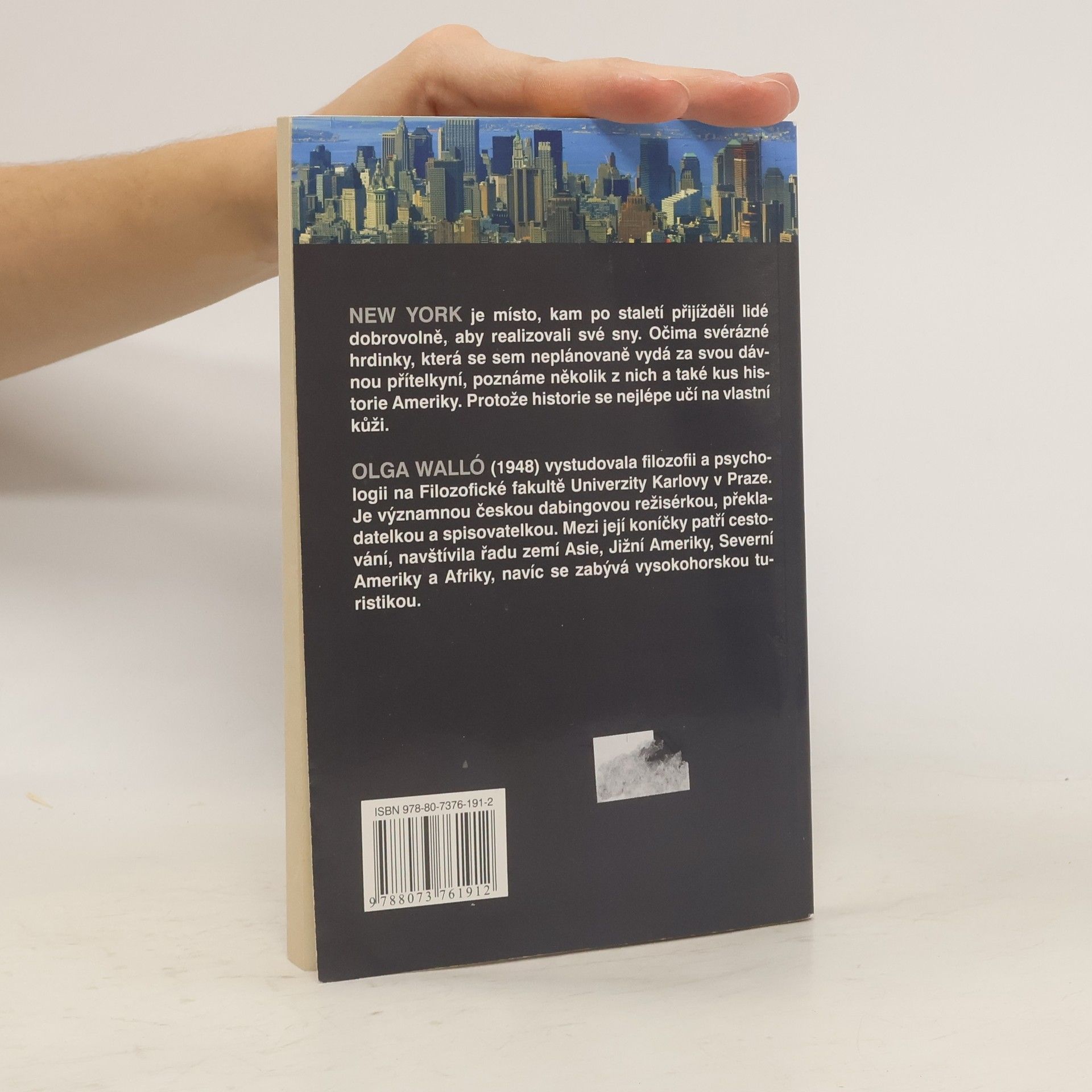 Co všechno vás může potkat v New Yorku, když jste sem neplánovaně pozváni svou přítelkyní z mládí, vtipně vypráví česká překladatelka a dabingová režisérka Olga Walló. New York je místo, kam po staletí přijížděli lidé dobrovolně, aby realizovali své sny. Očima svérázné hrdinky, která se sem neplánovaně vydá za svou dávnou přítelkyní, poznáme několik z nich a také kus historie Ameriky. Protože historie se nejlépe učí na vlastní kůži. Olga Walló (1948) vystudovala filozofii a psychologii na Filozofické fakultě Univerzity Karlovy v Praze. Je významnou českou dabingovou režisérkou, překladatelkou a spisovatelkou. Mezi její koníčky patří cestování, navštívila řadu zemí Asie, Jižní Ameriky, Severní Ameriky a Afriky, navíc se zabývá vysokohorskou turistikou.