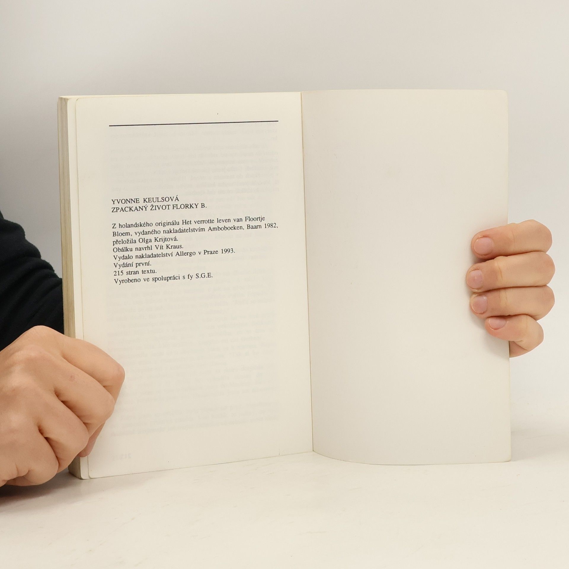 Knížka, která vypráví o další mladé narkomance Florce Bloemové. Je tu popsaný celý její dosavadní život. Od narození, kdy jí její matka musela dát pryč, protože by nebyla schopná se zárověň postarat i o její sestru Bep. Od malička se stěhuje z jednoho ústavu do druhého nikde nevydrží kvůli problémovému chování. Ani v pěstounských rodinách dlouho nevydrží a to se projevuje na její psychice. Po delší době se shledá znovu se svou matkou. Je zde popsána její cesta k drogám, její pocity... Jak se postupně dostala až k prostituci ve svých 14 letech. Autorka se ve svých pracích soustřeďuje na ožehavá témata jako je např. osud heroinových kurviček jako v této knize. „Plav od těch dveří, no tak plav!“ křičela na mě Bepka. „Plav, nebo tě od nich vykopám!“ Vší silou, která mi ještě zbyla, jsem se stočila do klubíčka. Nenechám se vykopat! Stáhla jsem hlavu mezi ramena a čekala, až dopadne první rána. Jenže nedopadlo nic. Bylo ticho. Bylo tak dlouho ticho, že mě chytla zvědavost a zvedla jsem hlavu. A tehdy jsem uviděla, jak Bepka stojí u matrace a jak na něco kouká. Na něco, co tam leželo v kalužince měsíčního světla. Popadla to a podívala se na mě. Šklíbila se, když řekla: „Jestli se nehneš od těch dveří, tak ho vyhodím do zahrady.“