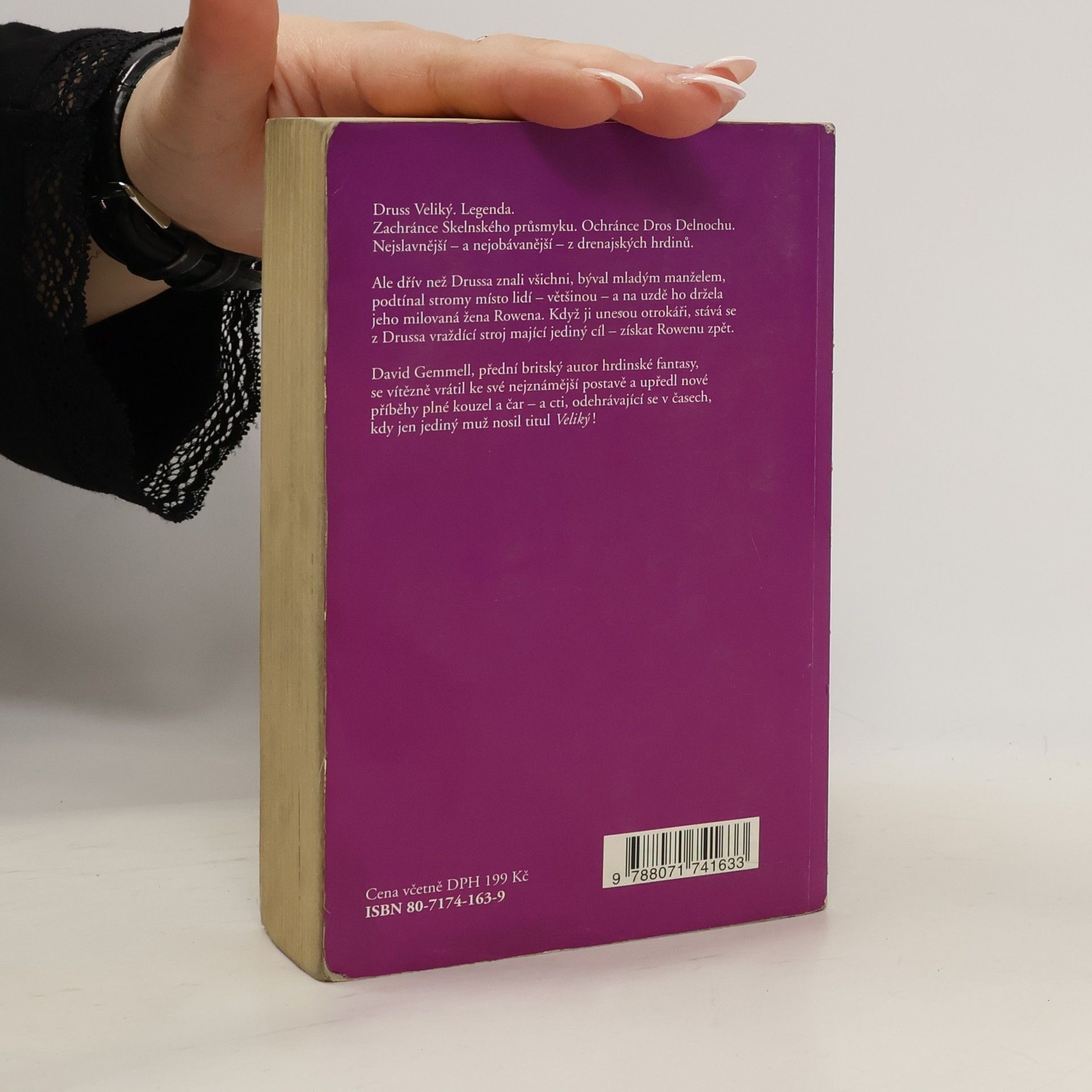 Druss Veliký. Legenda. Zachránce Skelnského průsmyku. Ochránce Dros Delnochu. Nejslavnější - a nejobávanější - z drenajských hrdinů. Ale dřív než Drussa znali všichni, býval mladým manželem, podtínal stromy místo lidí - většinou - a na uzdě ho držela jeho milovaná žena Rowena. Když ji unesou otrokáři, stává se z Drussa vraždící stroj mající jediný cíl - získat Rowenu zpět. David Gemmell, přední britský autor hrdinské fantasy, se vítězně vrátil ke své nejznámější postavě a upředl nové příběhy plné kouzel a čar - a cti, odehrávající se v časech, kdy jen jediný muž nosil titul Veliký! -- zdroj: www.legie.info --