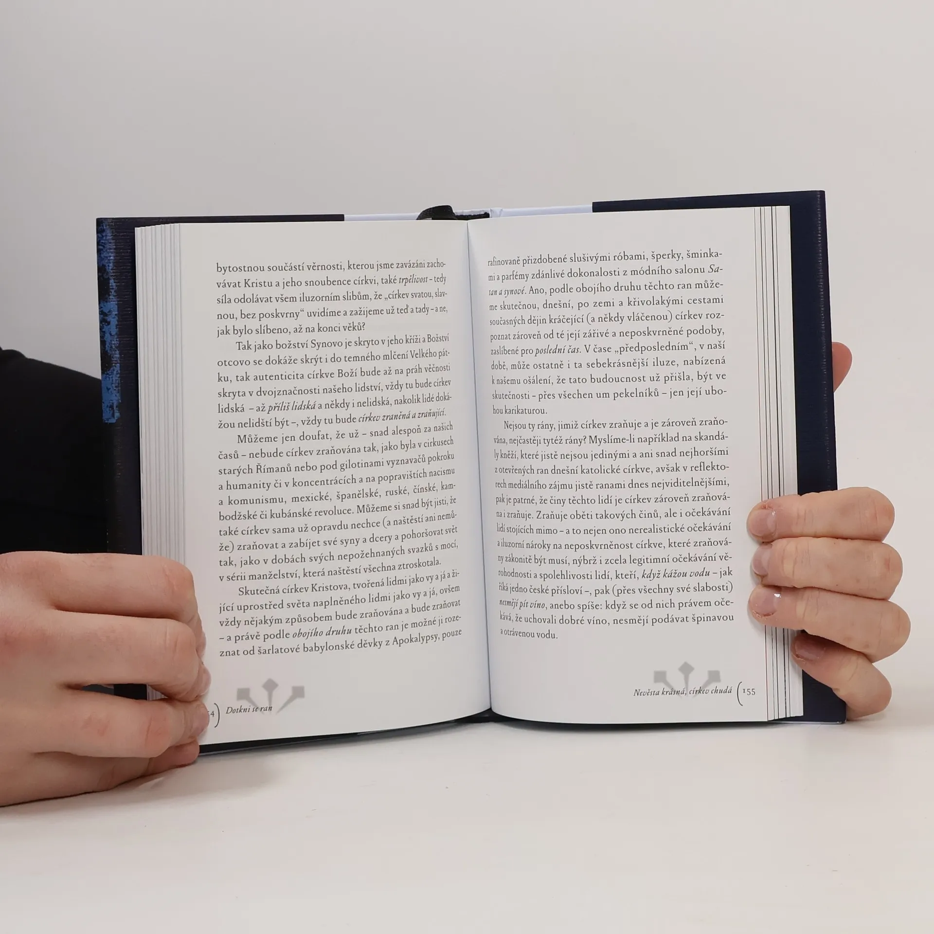Ve čtrnácti esejích autor vychází z evangelijního příběhu o „nevěřícím Tomášovi". Představy o Bohu, církvi a víře „bez zranění" autor považuje za iluze. Ke křesťanské víře patří odvaha vidět rány našeho světa a dotýkat se jich vírou, která sama je jimi zasažena, zraněna. Tváří v tvář „zraněnému Bohu" člověk může odložit „brnění, masky a šminky", jimiž před druhými a někdy sám před sebou zakrývá svá bolestná místa. Kniha obsahuje jak teologicko-filozofické meditace, dotýkající se mystických hloubek víry, tak překvapivé, ostré i místy humorné komentáře konkrétních událostí a typických znaků naší doby. Zdrojem autorovy inspirace je křesťanská i židovská mystika, Pavlova a Lutherova teologie kříže, současná postmoderní filozofie a teologie i poklady staré lidové velikonoční zbožnosti a umění a v neposlední řadě i autorovy vlastní zkušenosti z dlouholeté terapeutické i pastorační praxe.