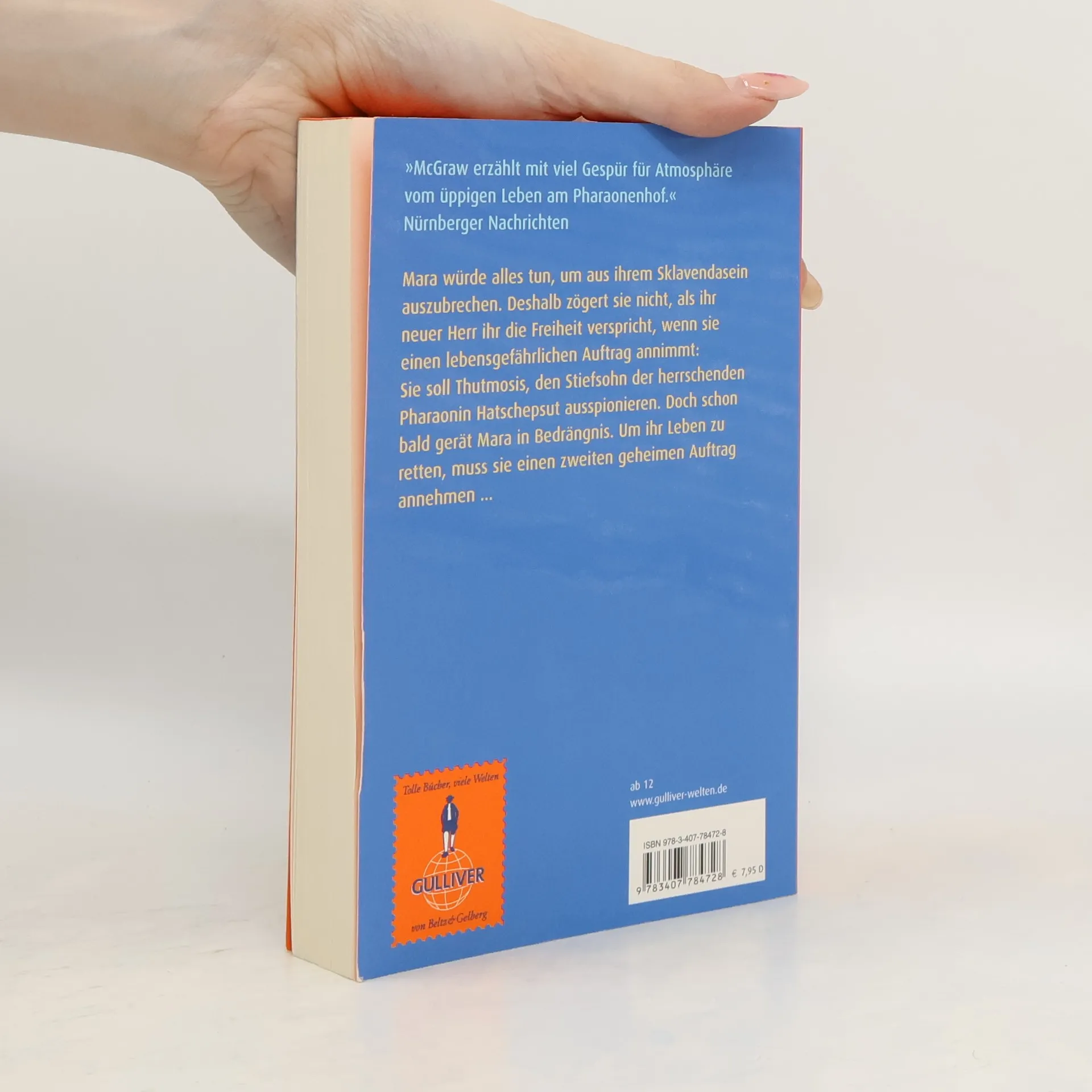 Eine junge Sklavin im alten Ägypten riskiert ihr Leben, um die Freiheit zu gewinnen - und gerät mitten in die gefährlichen Intrigen am Hofe der Pharaonin. Mara würde alles tun, um aus ihrem Sklavendasein auszubrechen. Deshalb zögert sie nicht, als ihr neuer Herr ihr die Freiheit verspricht, wenn sie einen lebensgefährlichen Auftrag annimmt: Sie soll Thutmosis, den Stiefsohn der herrschenden Pharaonin ausspionieren. Doch schon bald gerät sie in Bedrängnis und muss, um ihr Leben zu retten, einen zweiten geheimen Auftrag annehmen: Der junge Fürst Scheftu, ein Getreuer Thutmosis', zwingt sie, ohne es zu wissen, eine Doppelrolle zu spielen. - Mara muss nun für zwei erbitterte Feinde Informationen beschaffen. Würden die erfahren, dass sie für beide arbeitet, so wäre das ihr sicherer Tod. Mara selbst ist hin- und hergerissen zwischen den Parteien - bis ihr bewusst wird, dass sie sich längst in Scheftu verliebt hat. Doch gerade als sie ihm ihre Zuneigung gestehen will, wird sie als Spionin enttarnt. Auf einmal hängt nicht nur Maras Leben, sondern die Zukunft ganz Ägyptens am hauchdünnen Faden.