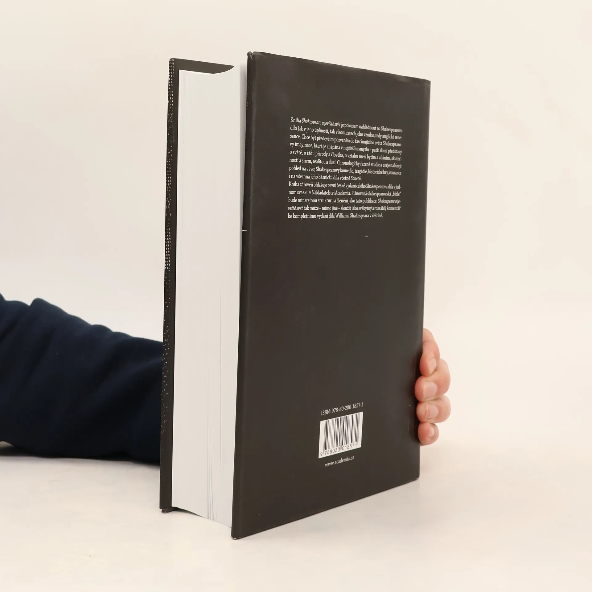 Kniha Shakespeare a jeviště svět je pokusem nahlédnout na Shakespearovo dílo jak v jeho úplnosti, tak v kontextech jeho vzniku, tedy anglické renesance. Chce být především pozváním do fascinujícího světa Shakespearovy imaginace, která je chápána v nejširším smyslu – patří do ní představy o světě, o řádu přírody a člověka, o vztahu mezi bytím a zdáním, skutečností a snem, realitou a iluzí. Chronologicky řazené studie a eseje nabízejí pohled na vývoj Shakespearovy komedie, tragédie, historické hry, romance i na všechna jeho básnická díla včetně Sonetů.