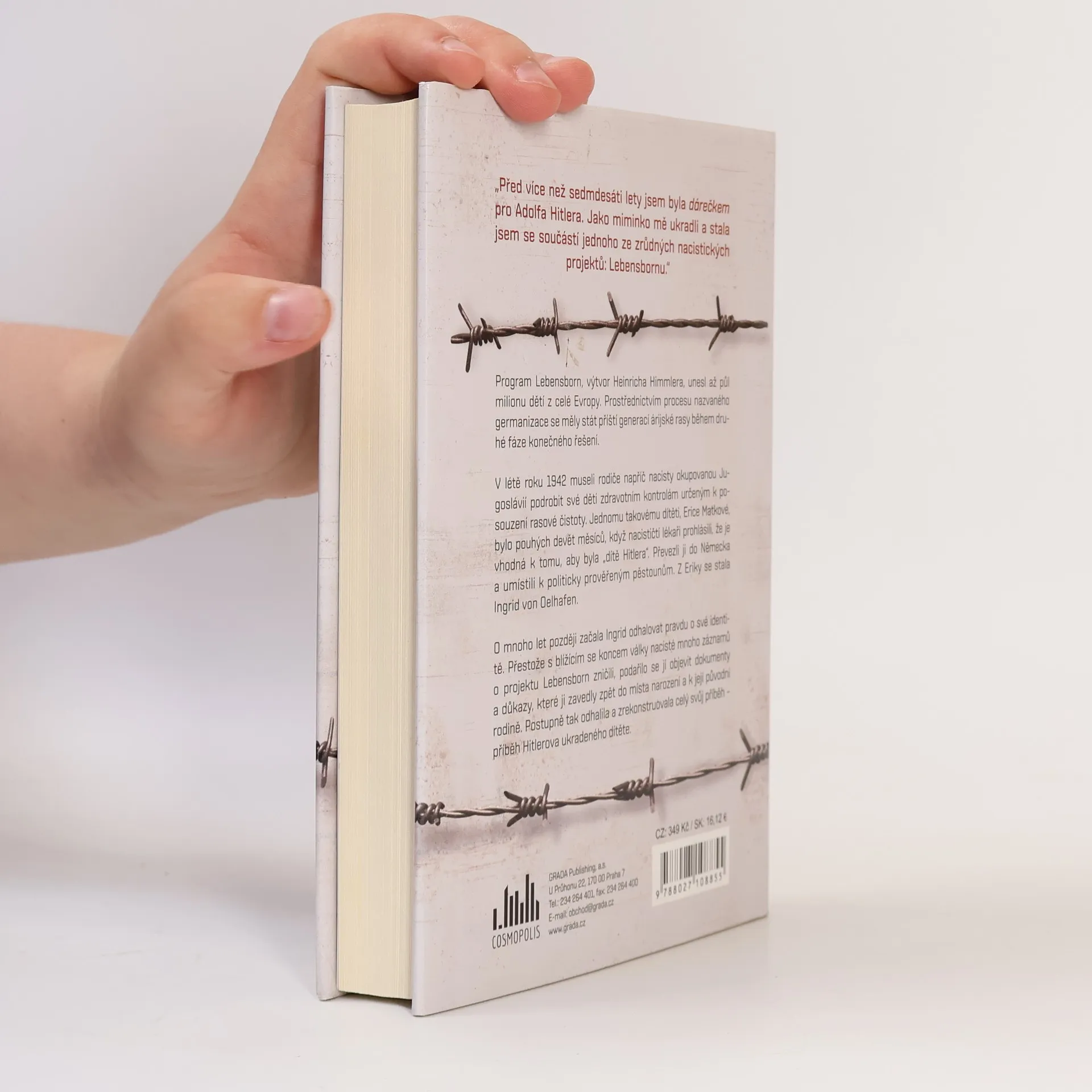 „Před více než 70 lety jsem byla dárečkem pro Adolfa Hitlera. Jako miminko mě ukradli a stala jsem se součástí jednoho ze zrůdných nacistických projektů: Lebensbornu.“ Program Lebensborn, výtvor Heinricha Himmlera, unesl až půl milionu dětí z celé Evropy. Prostřednictvím procesu nazvaného germanizace se měly stát příští generací árijské rasy během druhé fáze konečného řešení. V létě roku 1942 museli rodiče napříč nacisty okupovanou Jugoslávií podrobit své děti zdravotním kontrolám určeným k posouzení rasové čistoty. Jednomu takovému dítěti, Erice Matkové, bylo pouhých 9 měsíců, když nacističtí lékaři prohlásili, že je vhodná k tomu, aby byla „dítě Hitlera“. Převezli ji do Německa a umístili k politicky prověřeným pěstounům. Z Eriky se stala Ingrid von Oelhafen. O mnoho let později začala Ingrid odhalovat pravdu o své identitě. Přestože s blížícím se koncem války nacisté mnoho záznamů o projektu Lebensborn zničili, podařilo se jí objevit dokumenty a důkazy, které ji zavedly zpět do místa narození a k její původní rodině. Postupně tak odhalila a zrekonstruovala celý svůj příběh – příběh Hitlerova ukradeného dítěte.