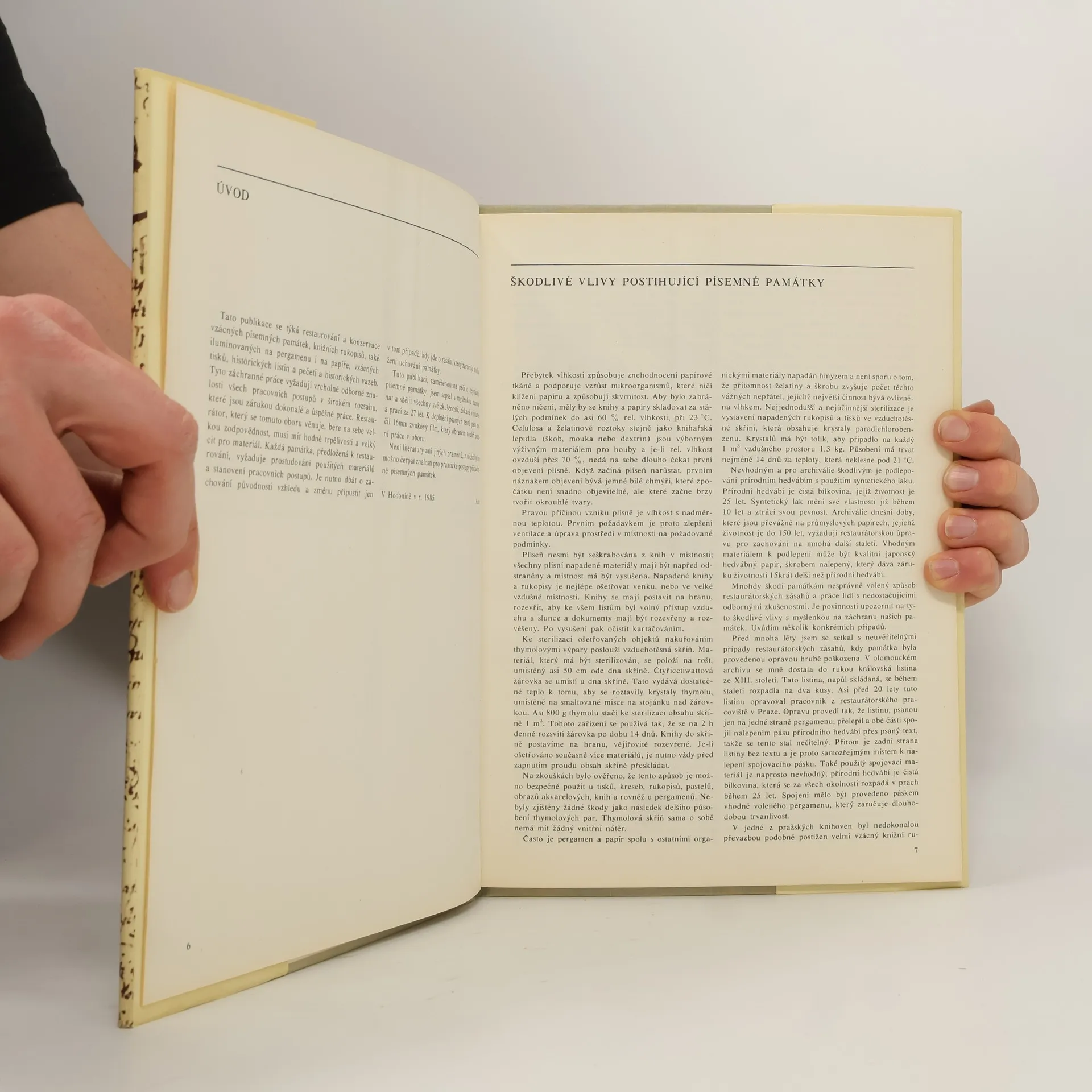 Publikace se týká restaurování a konzervace písemných památek, knižních rukopisů, iluminací na pergamenu i na papíře, vzácných tisků, historických listin, pečetí a historických vazeb. 1.vydání - náklad pouhých 5000 ks.