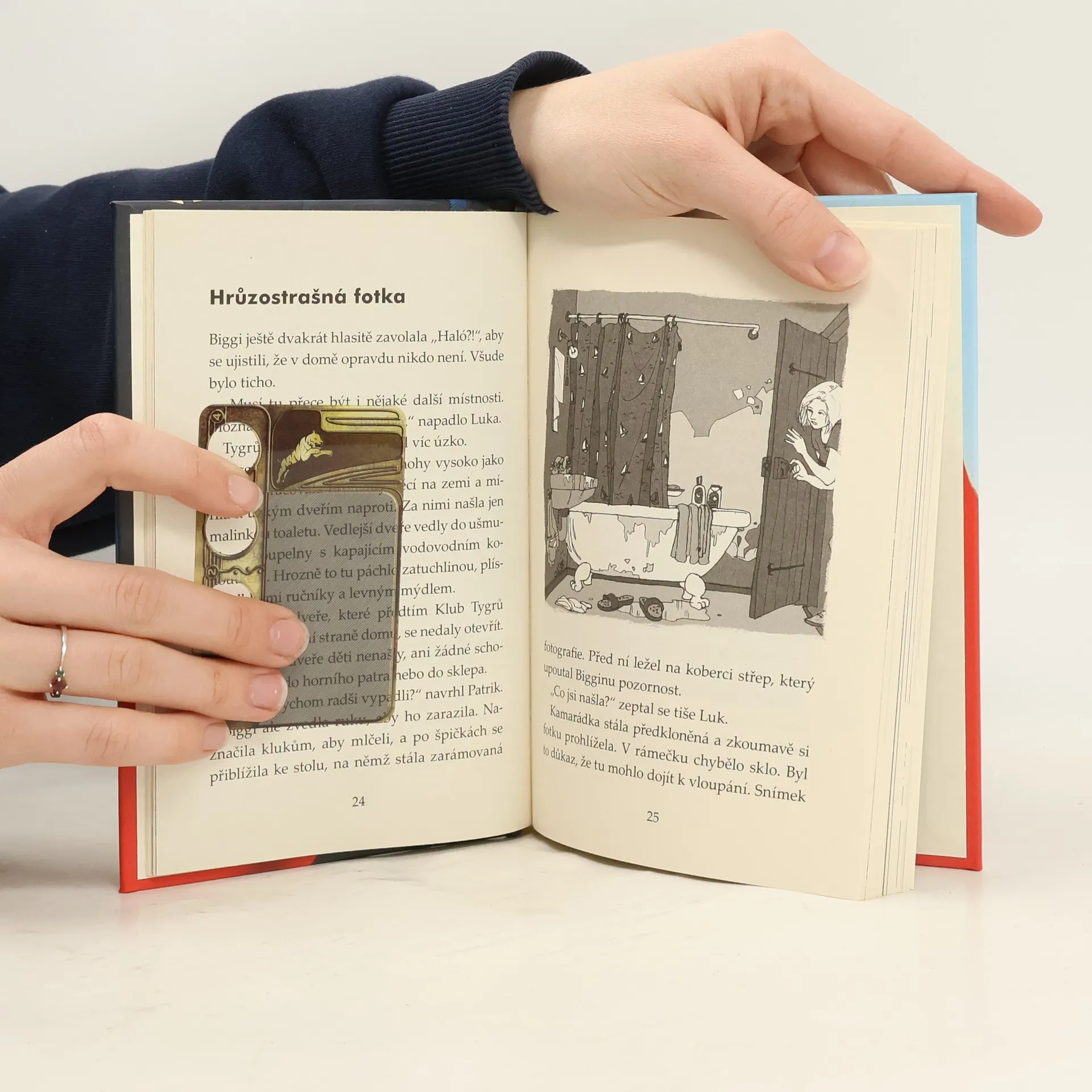 Zapoj se do pátrání i ty a zažij celé dobrodružství z první ruky! Biggi, Luk a Patrik náhodou při projížďce na kolech objevují starý dům, o němž kolují podivné zvěsti. Zdá se, že s polorozpadlým domem opravdu něco nehraje. Rozhodnou se, že do domu proniknou. Na stole objevují starou fotografii v rámečku. Jen se jí však dotknou, stane se něco strašného: v pokoji se zjeví přízrak, který jako by je chtěl před něčím varovat. Pomoz vyřešit Klubu Tygrů další záhadný případ!