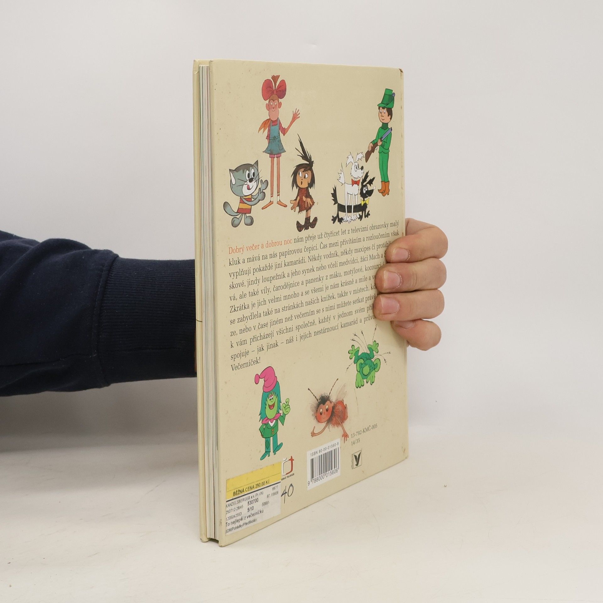 Nejoblíbenější dětský pořad na české obrazovce Večerníček slaví letos 40 let od svého vzniku, a protože jeho příběhy mají u dětí velký úspěch i v knižní podobě, připravili jsme výbor toho nejlepšího, co se za dlouhých 40 let dětem nejvíc líbilo. V barevné a bohatě ilustrované knížce najdete dvacet příběhů těch nejoblíbenějších postaviček, jako jsou Mach a Šebestová, Rákosníček, Křemílek a Vochomůrka, Malá čarodějnice, Bob a Bobek, Runcaje s Mankou i Cipískem, Štaflík a špagetka, Maková panenka a motýl Emanuel nebo Víla Amálka či neposedná koťata Macourek, Camfourek a Pacička.