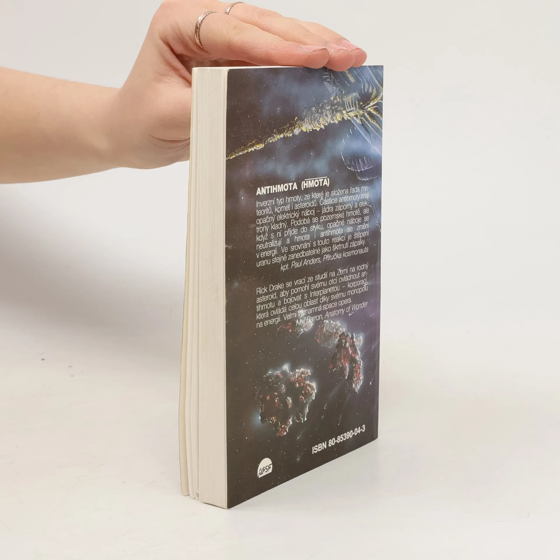 Antihmota: Inverzní typ hmoty, ze které je složena řada meteoritů, komet i asteroidů. Částice antihmoty mají opačný elektrický náboj – jádra záporný a elektrony kladný. Podobá se pozemské hmotě, ale když s ní přijde do styku, opačné náboje se neutralizují a hmota i antihmota se změní v energii. Ve srovnání s touto reakcí je štěpení uranu stejně zanedbatelné jako škrtnutí zápalky. kpt. Paul Anders, Příručka kosmonauta Rick Drake se vrací ze studií na Zemi na rodný asteroid, aby pomohl svému otci ovládnout antihmotu a bojovat s Interplanetou – korporací, která ovládá celou oblast díky svému monopolu na energii. Velmi významná space opera. Neil Barron, Anatomy of Wonder... celý text