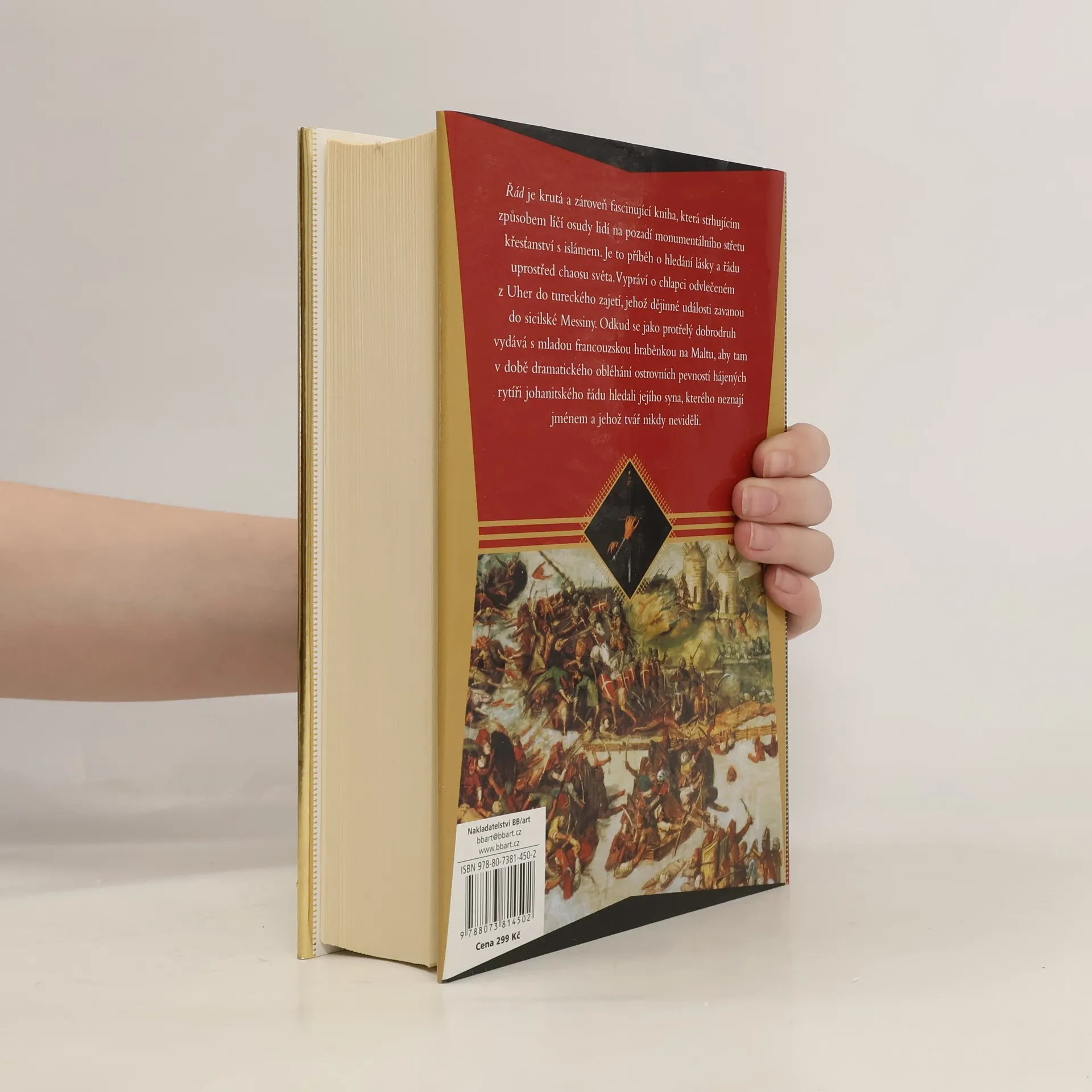 Román vypráví o chlapci odvlečeném z Uher do tureckého zajetí, jehož příběh se prolíná se sicilskou Messinou. Zde se setkává s mladou francouzskou hraběnkou, která se rozhodne vypravit na Maltu, aby našla svého syna, jehož jméno ani tvář nezná. V době dramatického obléhání ostrovních pevností rytíři johanitského řádu se oba snaží chlapce zachránit. Příběh nás vtahuje do jiného světa, plného hrdinství, tragických zvratů a vášní. Tim Willocks mistrovsky zachycuje osudy několika pečlivě vykreslených postav na pozadí významného konfliktu mezi Východem a Západem v 16. století. V květnu 1565 vyhlásil turecký sultán Süleyman Nádherný válku johanitským rytířům na Maltě. Ostrovní bašta křesťanství je obklíčena obrovským osmanským vojskem, které ji marně obléhá tři měsíce, přičemž na obou stranách dochází k obrovským ztrátám. Na scéně se objevuje hraběnka Carla Penautier, která se snaží dostat na Maltu, aby našla svého syna, jenž jí byl odňat po porodu. Pomoci jí může pouze Sas Mattias Tannhauser, bývalý janičář a nyní obchodník se zbraněmi a opiem, který se rozhodne hraběnku doprovodit. Společně se snaží v chaosu krvavých bojů a strádání zachránit chlapce z rukou svaté války.