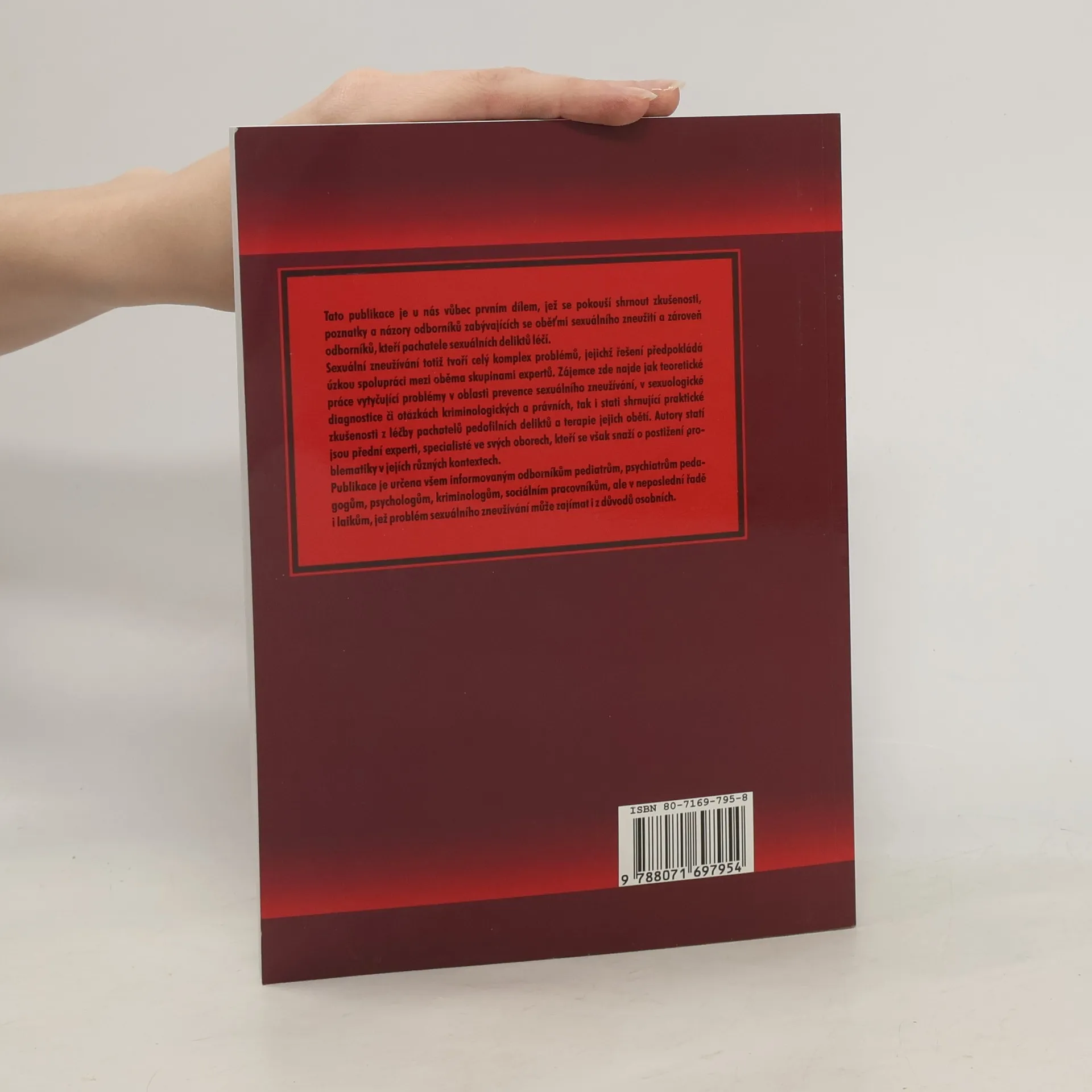 Kniha se zabývá aktuální problematikou sexuálního zneužívání dětí. Poskytuje přehled o různých aspektech tohoto jevu z pohledu psychologa, sexuologa, psychiatra i pedagoga. Jsou v ní uvedeny poznatky o výskytu sexuálního zneužívání u nás i ve světě a o jeho následcích v psychickém vývoji oběti. Kniha také seznamuje s možnostmi pomoci a krizovou intervencí, ale i s osobnostními a sexuologickými charakteristikami pachatele. Naši přední odborníci zde shrnují teoretické i praktické zkušenosti. Kniha je určena odborníkům i široké veřejnosti, především pak rodičům dítěte, které se stalo obětí zneužívání.
