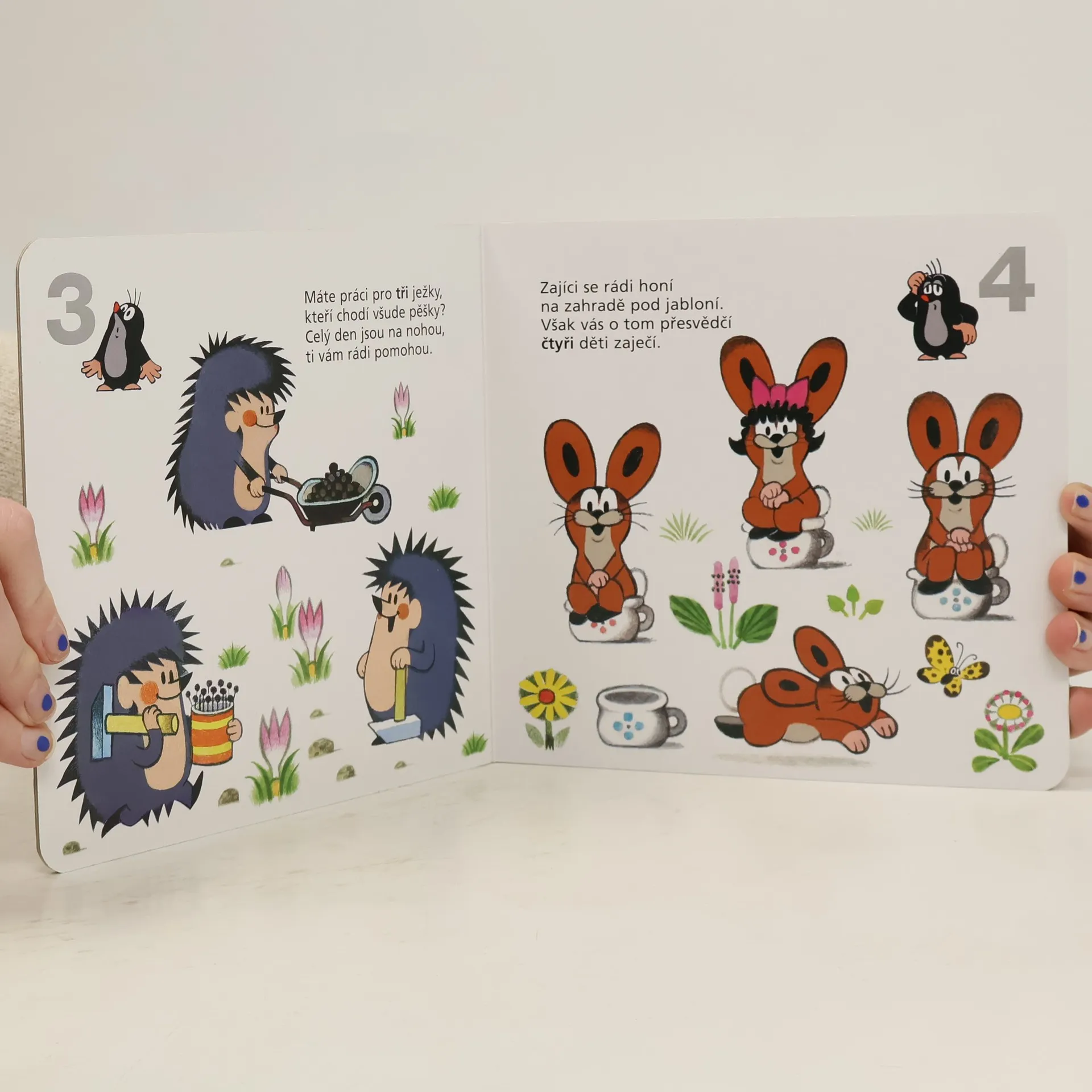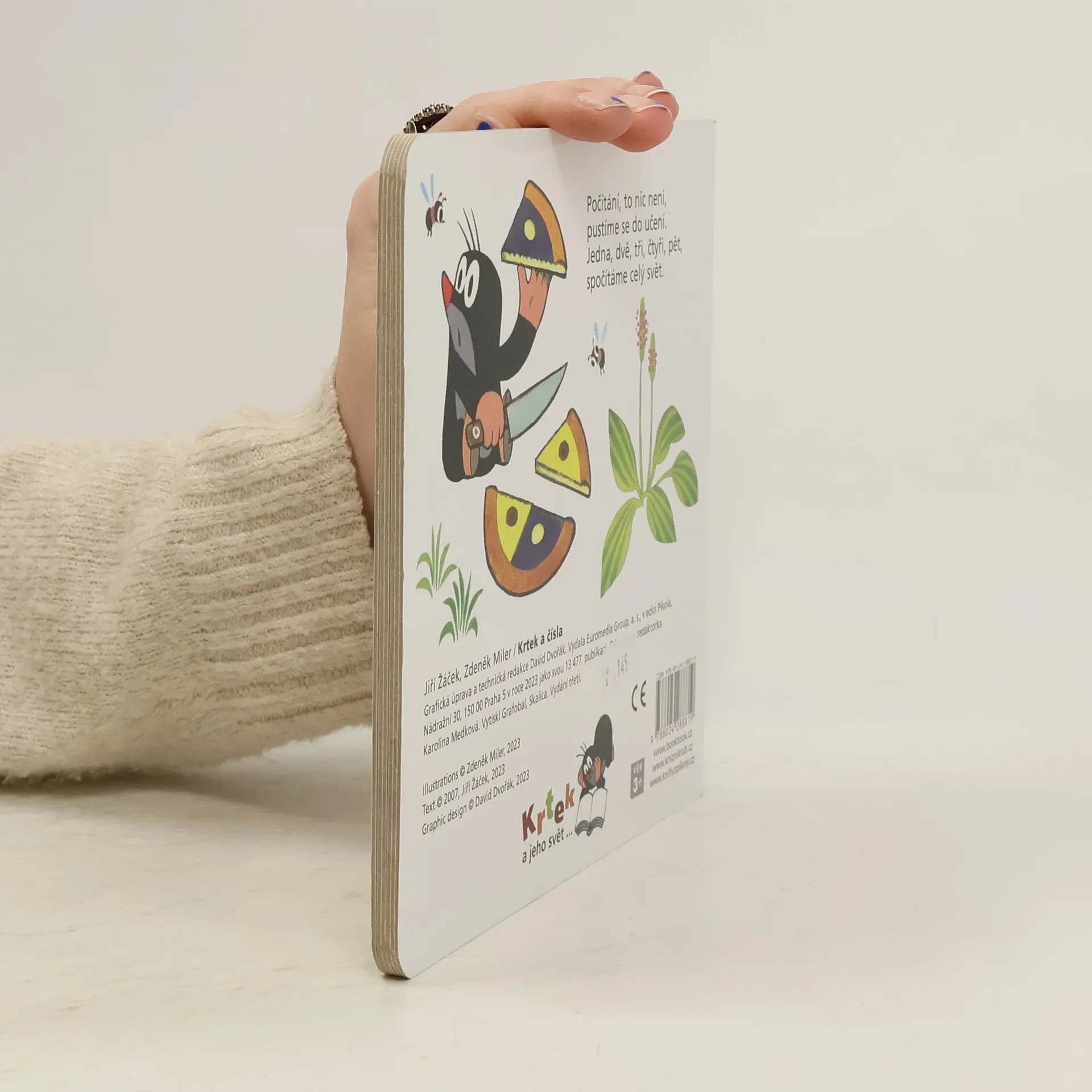 V páté z řady půvabných knížek pro ty nejmenší, kteří se teprve začínají seznamovat s taji čtení, psaní a počítání, radí Krtek a jeho kamarádi dětem, jak si poradit s počítáním. Číslovky od 1 do 10 si malí matematici mohou osvojit spolu se zvířátky z Krtkova světa. Kromě oblíbených živých ilustraci Zdeňka Milera jim v tom napomohou i vynalézavé verše Jiřího Žáčka.