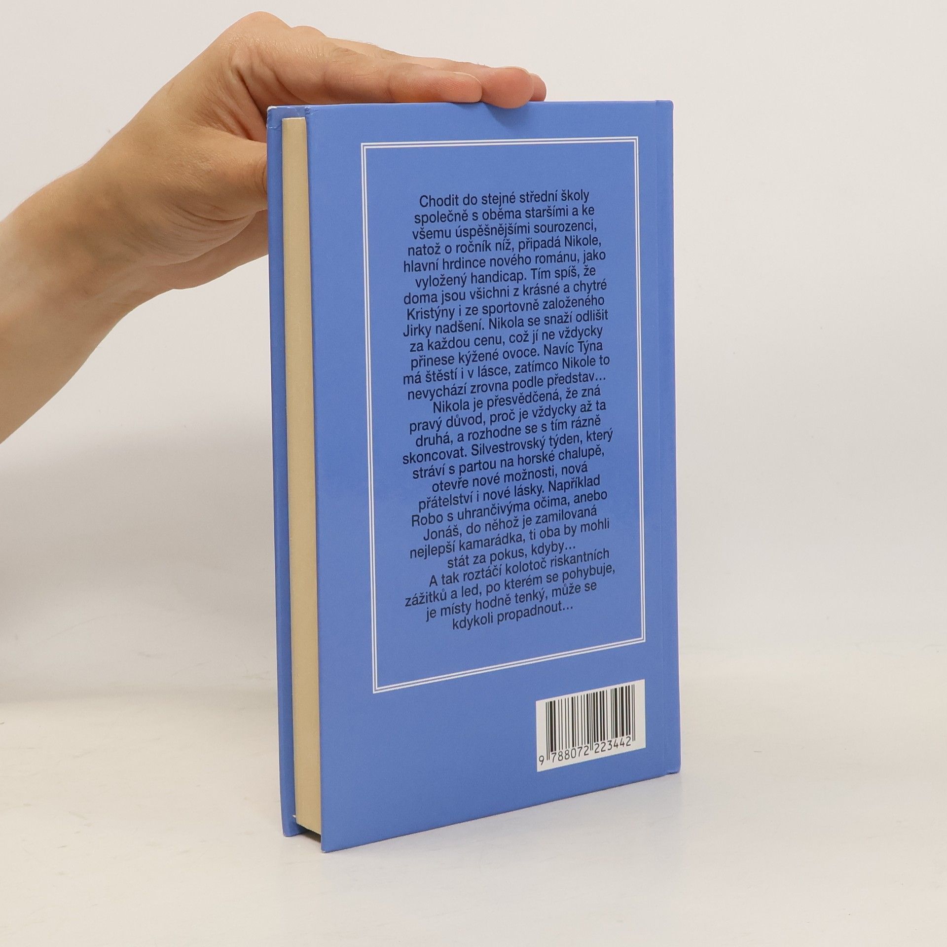 Chodit do stejné střední školy společně s oběma staršími a ke všemu úspěšnějšími sourozenci, natož o ročník níž, připadá Nikol, hlavní hrdince nového románu, jako vyložený handicap. Tím spíš, že doma jsou všichni z krásné a chytré Kristýny i ze sportovně založeného Jirky nadšení. Nikol se snaží odlišit za každou cenu, což jí ne vždycky přinese kýžené ovoce. Navíc Týna má štěstí i v lásce, zatímco Nikol to nevychází zrovna podle představ... Nikol je přesvědčená, že zná pravý důvod, proč je vždycky až ta druhá, a rozhodne se s tím rázně skoncovat. Silvestrovský týden, který stráví s partou na horské chalupě, otevře nové možnosti, nová přátelství i nové lásky. Například Robo s uhrančivýma očima, anebo Jonáš, do něhož je zamilovaná nejlepší kamarádka, ti oba by mohli stát za pokus, kdyby... A tak roztáčí kolotoč riskantních i erotických zážitků a led, po kterém se pohybuje, je místy hodně tenký, může se kdykoli propadnout.