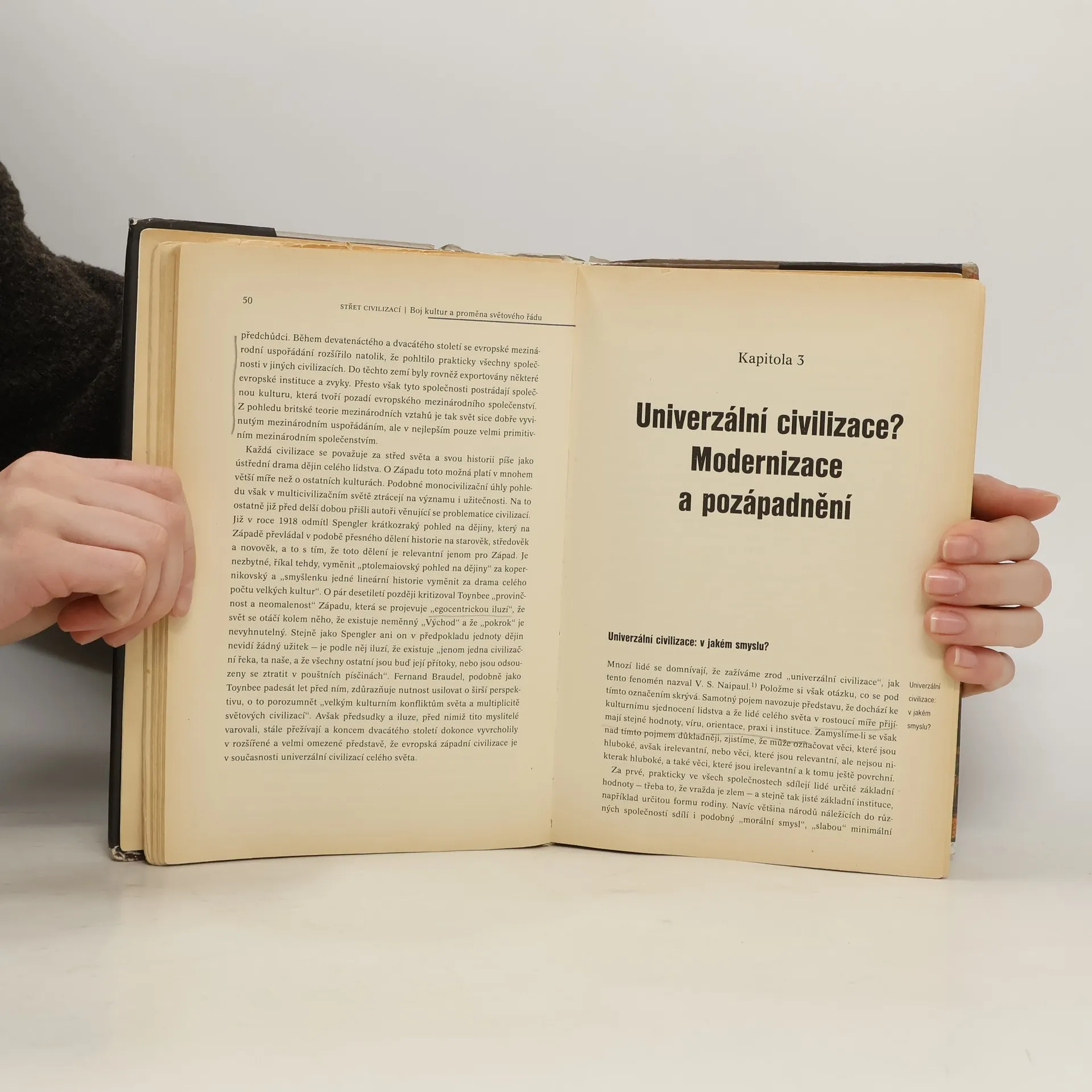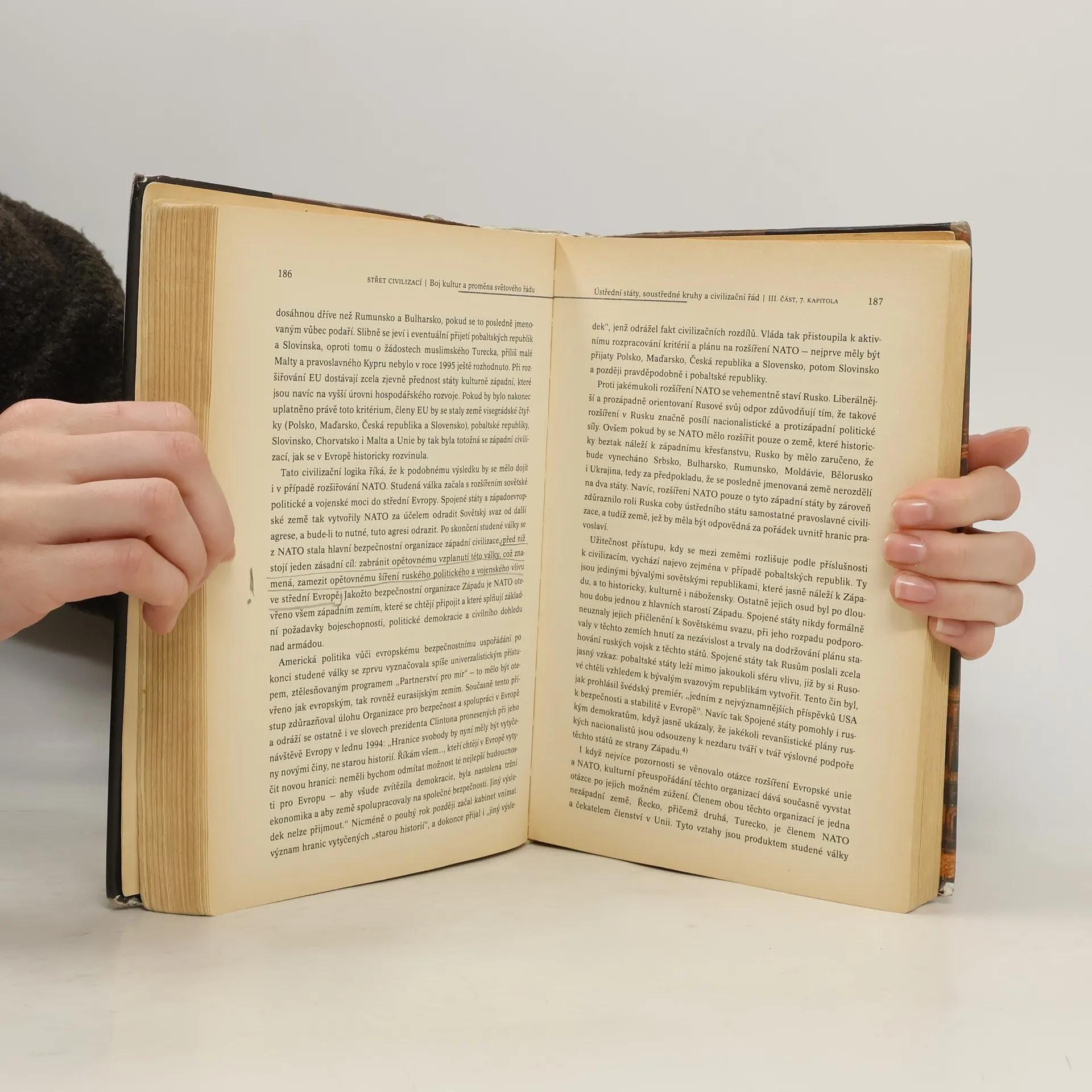 Boj kultur a proměna světového řádu. Kniha předního amerického politologa je pronikavou analýzou stavu světové politiky po skončení studené války, kdy hnacími silami již nejsou národní státy a ideologie, nýbrž civilizace vymezené náboženskými, právními a kulturními tradicemi. Globální politika bude formována především kulturními rozdíly a pokud propuknou války, budou se týkat celých civilizací. Právě na rozhraní těchto kultur ve "zlomových liniích" se nacházejí možná ohniska konfliktů, jež mohou přerůst v mezicivilizační střety. Huntington varuje před rozšířením a vystupňováním těchto střetů a zevrubně analyzuje důvody, které k nim vedou: změny mocenské rovnováhy mezi Západem a někdejšími koloniálními oblastmi třetího světa, ekonomický, vojenský i politický růst asijských civilizací, kulturní obrat nezápadních společností k domácím tradicím, demografická exploze a konflikty vyvolané militantností islámu a vzestupem Číny....