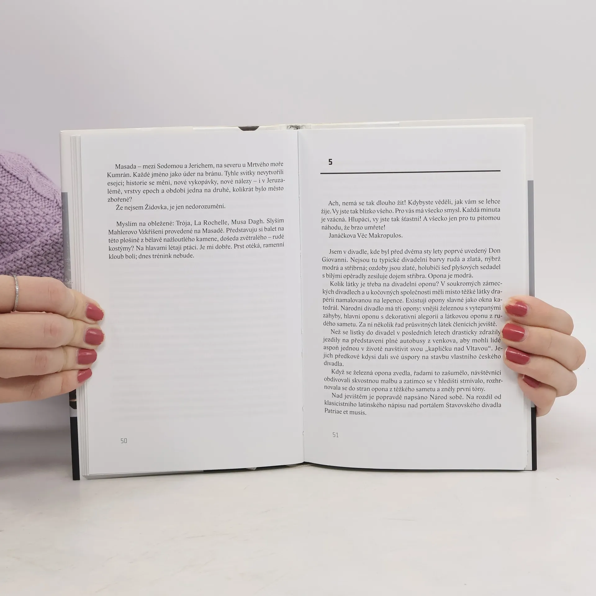 Krajina, intelekt, erós, představují tematický triumvirát, ze kterého čerpá poslední dokončená kniha německy píšící autorky českého původu. "Krajinu" zosobňuje Praha probuzená z komunistické nehybnosti do časů dravého kapitalismu, kam se po dvaceti letech strávených na Západě vrací slavná tanečnice a choreografka Leonora Marty. "Intelekt", to jsou hrdinčiny úvahy o nové choreografii i o společenských proměnách po roce 1989, o české minulosti a současnosti. A nakonec "erós" milostný vztah mezi Martou a potomkem odsunutých sudetských Němců, který většina recenzí ocenila jako originální příspěvek k česko-německému porozumění.