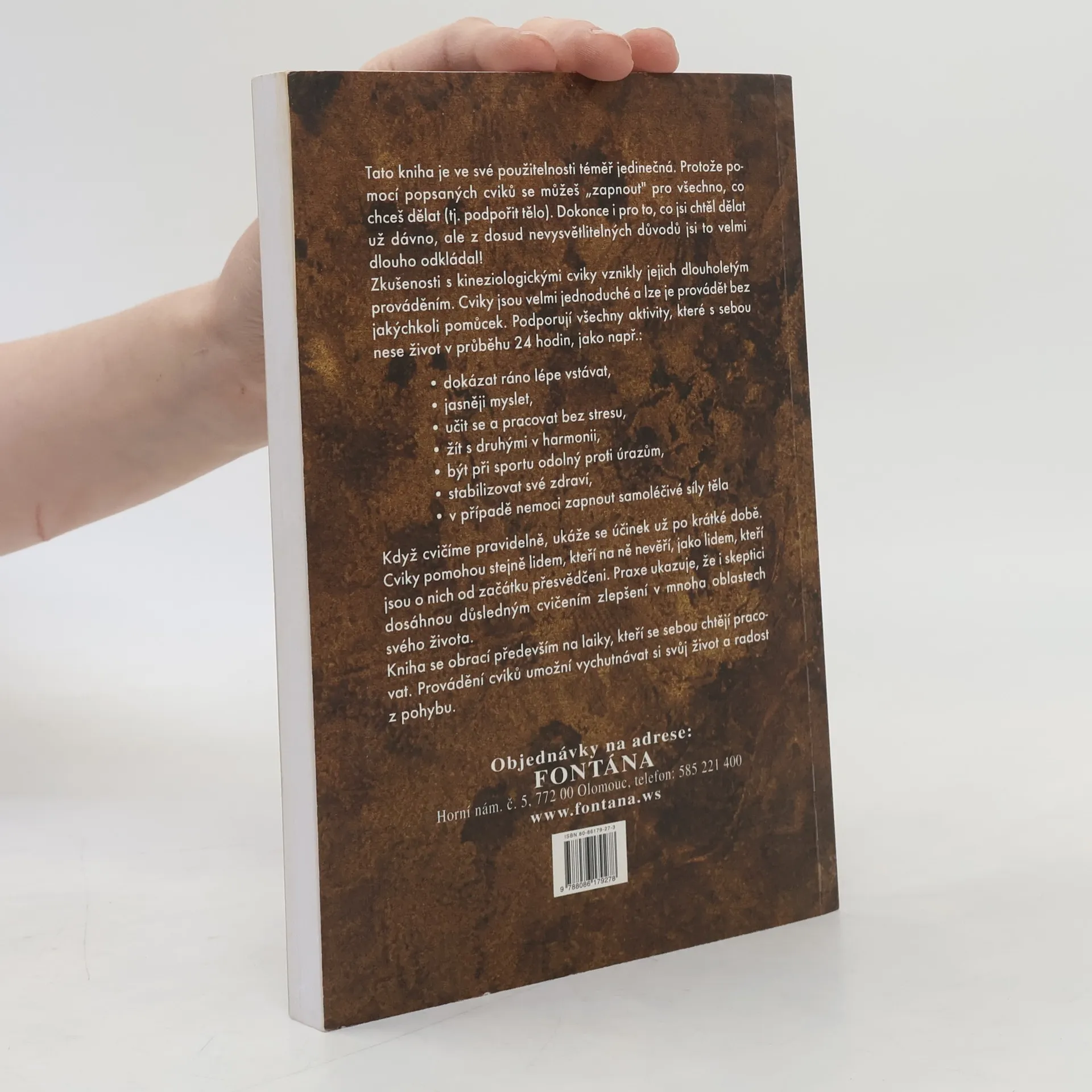 Kineziologie - nauka o pohybu - nová cesta ke zdraví, na které se můžete naučit kineziologické cviky, jež můžete provádět bez jakýchkoliv pomůcek; informace o energetické rovnováze těla, sebeléčebném reflexu, léčivém TAO, čakrách, vztahu mezi alergiemi a potravinami.