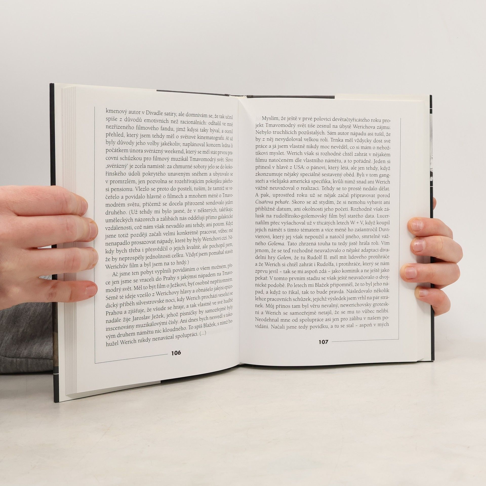 V knize se dočtete, jak Julien Duvivier vyšachoval Voskovce a Wericha z plánů natočit film o golemovi již ve 30. letech a jak naopak režisér Martin Frič s Werichovou asistencí vyšachoval uprostřed natáčení Císařova pekaře z režisérské stoličky Jiřího Krejčíka. Za jakých zmatků se tu v roce 1936 film o golemovi natáčel, že byl Císařův pekař určen především pro export do valutové ciziny... Autor jde dokonce do takových detailů, že vám prozradí, jak se mohutný golem v Císařově pekaři pohyboval. Jak? V každé noze byl schovaný jeden tanečník a střídavě cupitali vpřed.... celý text