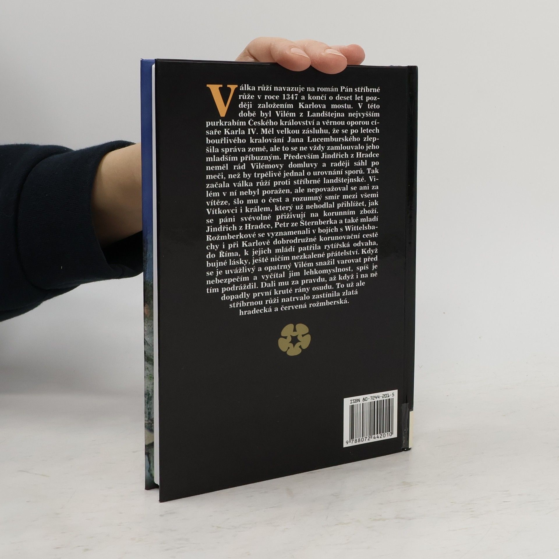 Druhá kniha série Vilém z Landštejna. Válka růží navazuje na román Pán stříbrné růže v roce 1347 a končí o deset let později založením Karlova mostu. V této době byl Vilém z Landštejna nevyššímu purkrabím Českého království a věrnou oporou císaře Karla IV. Měl velkou zásluhu, že se po letech bouřlivého kralování Jana Lucemburského zlepšila správa země, ale to se ne vždy zamlouvalo jeho mladším příbuzným. Především Jindřich z Hradce neměl rád Vilémovy domluvy a raději sáhl po meči, než by trpělivě jednal o urovnání sporů. Tak začala válka růží proti stříbrné landštejnské. Vilém v ní nebyl poražen, ale nepovažoval se ani za vítěze, šlo mu o čest a rozumný smír mezi všemi Vítkovci i králem, který už nehodlal přihlížet, jak se páni svévolně přiživují na korunním zboží. Jindřich z Hradce, Petr ze Šternberka a také mladí Rožmberkové se vyznamenali v bojích s Wittelsbachy i při Karlově dobrodružné korunovační cestě do Říma, k jejich mládí patřila rytířská odvaha, bujné lásky, ještě ničím nezkalené přátelství. Když se je uvážlivý a opatrný Vilém snažil varovat před nebezpečím a vyčítal jim lehkomyslnost, spíš je tím podráždil. Dali mu za pravdu, až když i na ně dopadly první kruté rány osudu. To už ale stříbrnou růži netrvalo zastínila zlatá hradecká a červená rožmberská.