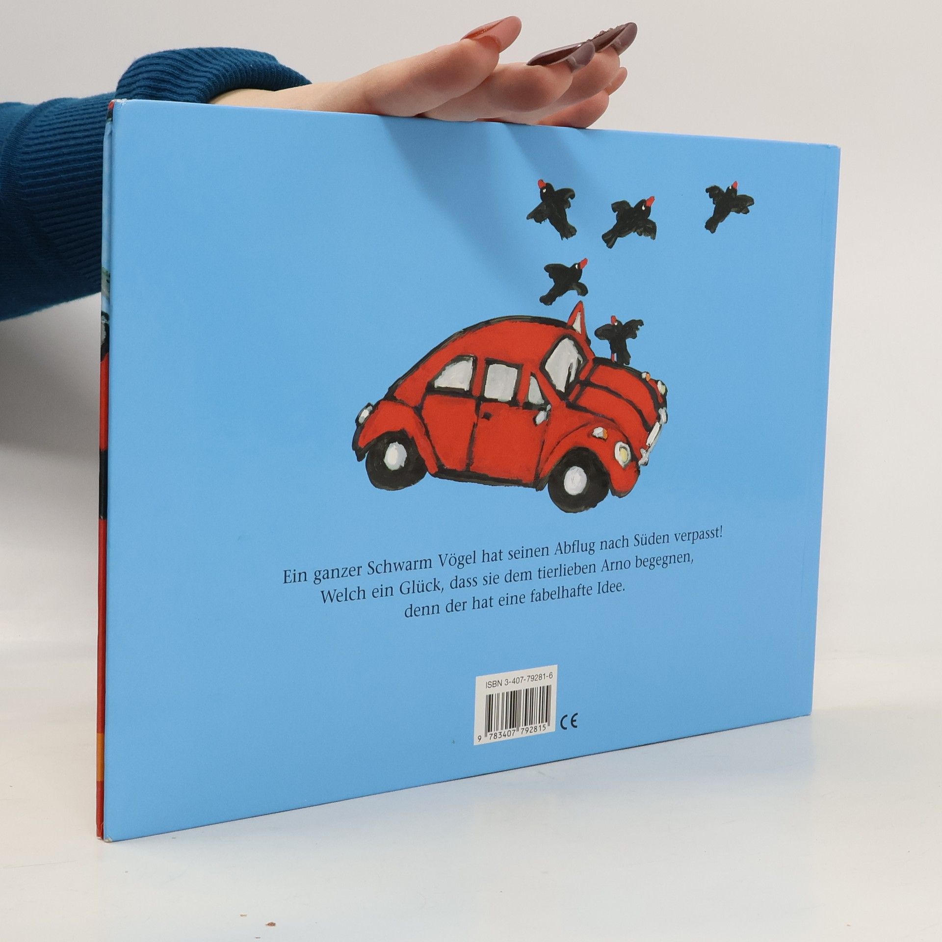 Im Herbst, wenn es bei uns kalt und ungemütlich wird, fliegen viele Vögel in den warmen Süden. In dieser Geschichte aber verpasst ein Vogelschwarm den Abflug. O weh! Ein ganzer Vogelschwarm hat den Abflug in den Süden verpasst und sitzt vor Arnos Wohnung im Baum. Arno und sein Hund Wolfgang handeln kurz entschlossen und nehmen die Vögel bei sich auf. Doch ihre Wohnung ist einfach zu klein für so viele Gäste. Da hat Arno eine Idee: Er packt die Vögel ins Auto und los gehts in Richtung Süden. Sehr bequem ist diese Fahrt nicht, aber den Vögeln hat sie offenbar gefallen, denn im nächsten Herbst erlebt Arno eine Überraschung.