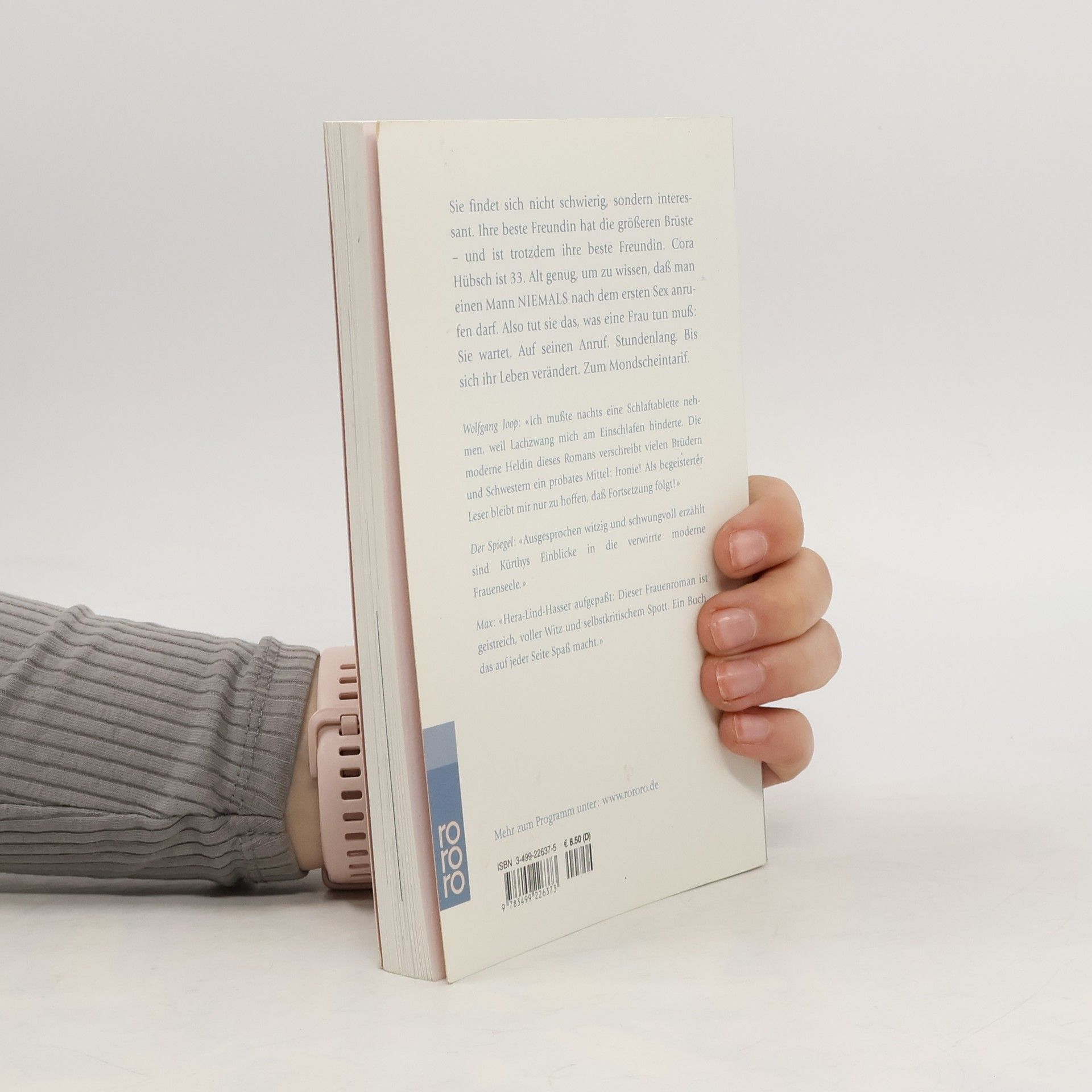 Sie findet sich nicht schwierig, sondern interessant. Ihre beste Freundin hat die größeren Brüste – und ist trotzdem ihre beste Freundin. Cora Hübsch ist 33. Alt genug, um zu wissen, dass man einen Mann niemals nach dem ersten Sex anrufen darf. Also tut sie das, was eine Frau tun muß: Sie wartet. Auf seinen Anruf. Stundenlang. Bis sich ihr Leben verändert. Zum Mondscheintarif.Wolfgang Joop: «Ich musste nachts eine Schlaftablette nehmen, weil Lachzwang mich am Einschlafen hinderte. Die moderne Heldin dieses Romans verschreibt vielen Brüdern und Schwestern ein probates Mittel: Ironie! Als begeisterter Leser bleibt mir nur zu hoffen, dass Fortsetzung folgt!»Der Spiegel: «Ausgesprochen witzig und schwungvoll erzählt sind Kürthys Einblicke in die verwirrte moderne Frauenseele.»Max: «Hera-Lind-Hasser aufgepaßt: Dieser Frauenroman ist geistreich, voller Witz und selbstkritischem Spott. Ein Buch, das auf jeder Seite Spaß macht.»