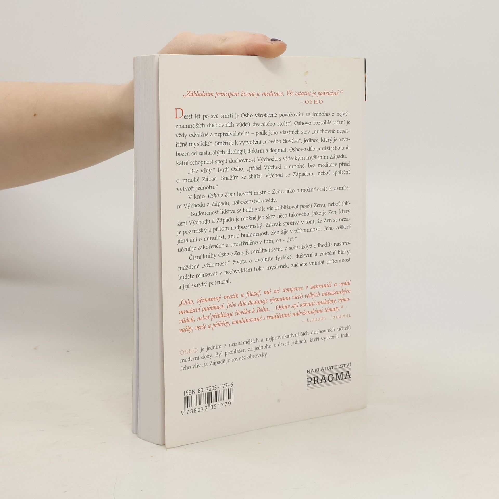 Oshovo rozsáhlé učení je vždy odvážné a nepředvídatelné - podle jeho vlastních slov \"duchovně nepatřičně mystické\". Směřuje k vytvoření \"nového člověka\", jedince, který je osvobozen od zastaralých ideologií, doktrín a dogmat. Oshovo dílo odráží jeho unikátní schopnost spojit duchovnost Východu s vědeckým myšlením Západu. \"Bez vědy,\" tvrdí Osho, \"přišel Východ o mnohé; bez meditace přišel o mnohé Západ. Snažím se sblížit Východ se Západem, neboť společně vytvoří jednotu.\" V knize Osho o Zenu hovoří mistr o Zenu jako o možné cestě k usmíření Východu a Západu, náboženství a vědy. \"Budoucnost lidstva se bude stále víc přibližovat pojetí Zenu, neboť sblížení Východu a Západu je možné jen skrz něco takového, jako je Zen, který je pozemský a přitom nadpozemský. Zázrak spočívá v tom, že Zen se nezajímá ani o minulost, ani o budoucnost. Zen žije v přítomnosti. Jeho veškeré učení je zakořeněno a soustředěno v tom, co je. Čtení knihy Osho o Zenu je meditací samo o sobě: když odhodíte nashromážděné \"vědomosti\" života a uvolníte fyzické, duševní a emoční bloky, budete relaxovat v neobvyklém toku myšlenek, začnete vnímat přítomnost a její skrytý potenciál.