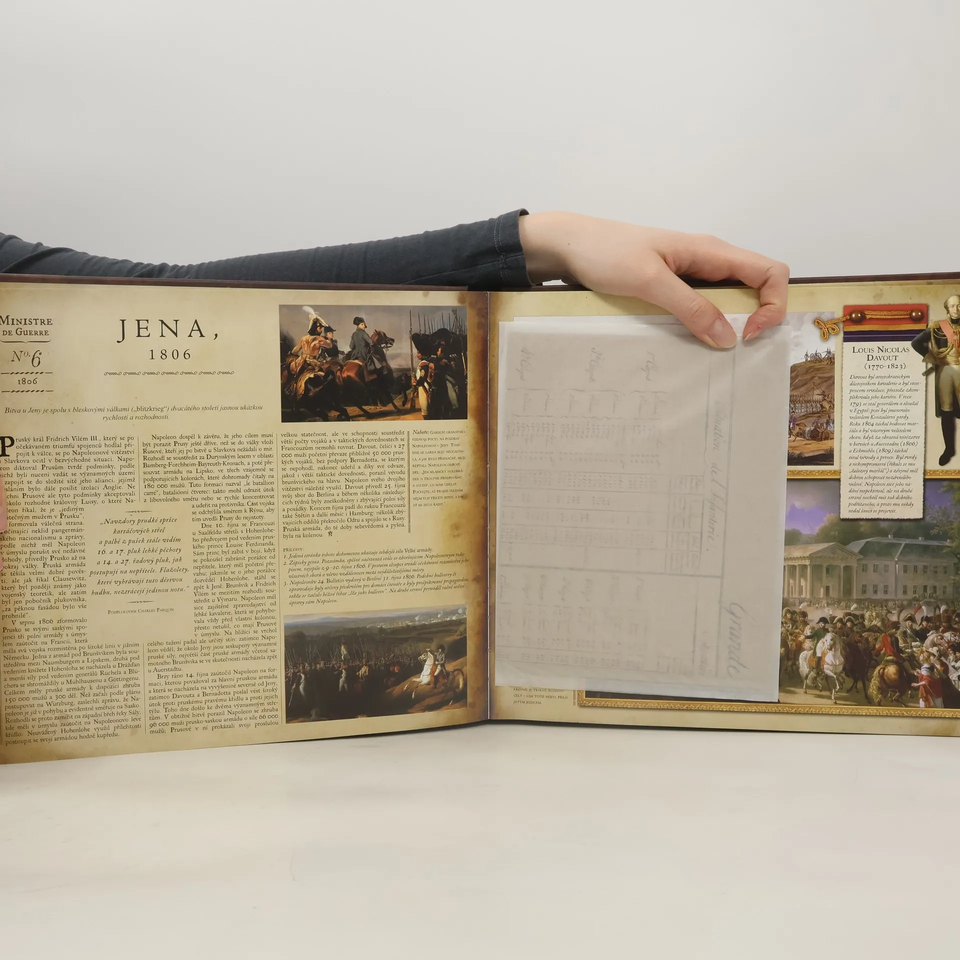 Tato kniha, kterou napsal jeden z nejznámějších historiků, obsahuje přes 40 faksimilií vzácných a nově prozkoumaných dobových dokumentů, které jsou vloženy přímo mezi stránky knihy. Prožijte znovu tuto výjimečnou historickou epochu - stačí si vzít do ruky a "osahat" tyto vzácné mapy, dopisy, zápisníky, zprávy, šiforvané depeše, knihy tajných signálů, prohlášení, bulletiny, lodní deníky a noviny, které byly dosud založeny nebo vystaveny v archivech a muzeích po celé Evropě. Nechte se vtáhnout do samotné akce a přečtěte si Nelsonovu zprávu o obléhání Toulonu, lodní deník kapitána Hardyho s popisem bitvy u Trafalgaru, Napoleonem podepsané prohášení k jeho vítězné armádě po bitvě u Slavkova, a zápisník vévody z Wellingtonu, který používal v bitvě u Waterloo. 1. brožura obsahuje překlady vložených faksim. dobových dokumentů, 2. mapy bitev V kartonovém pouzdru 29 x 31 cm V pub. vlepeny papírové kapsičky s volnými příl.