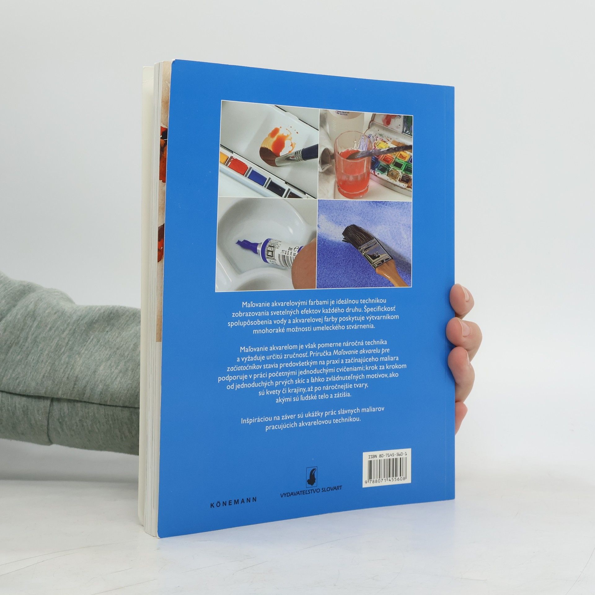 Praktická príručka s množstvom základných poznatkov umožňujúcich pochopiť a úspešne používať techniku maľovania akvarelovými farbami. Obsahuje informácie o materiáloch i o rôznych technikách maľovania. Dôležitou súčasťou sú názorné ilustrácie a podrobný opis jednotlivých krokov a cvičení.